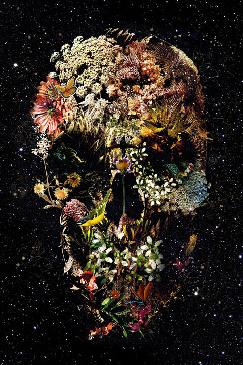 “I love using vibrant colours to highlight the main subject of my work. Flowers are the most important tool for me to highlight the cycle of life in my skull-themed works.”
