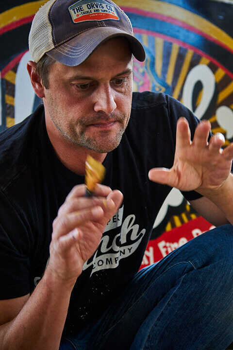 Fine Art Done Boldly is Timʼs artistic mantra, and it materializes in three dramatic genres. His large format, Pop Art-styled paintings provoked through wry humor and vivid images, large biscuit-joined pine wood cutouts of pulp commercial subjects and unique “Cerealism” mosaic—images formed with intricately cut slices of cereal boxes—are astonishing in their complexity and beauty.