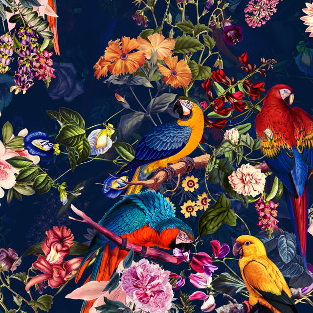 These digital floral prints are busy, bold, and in your face. Featuring bright colors, dark backgrounds, and life-like 3-D design, you will love how this wall art grows towards you and invites you in.