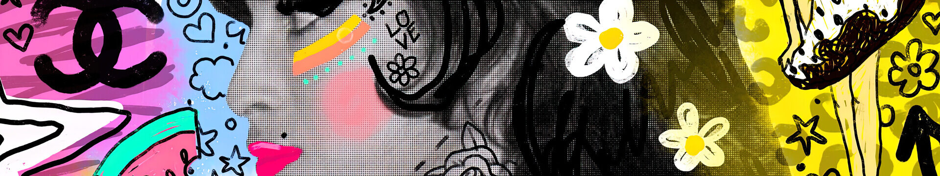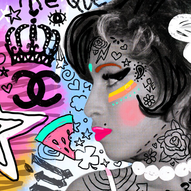Vibrant. Fun. Girlie. This pop art wall décor captures the energy and childish glee of having a sleepover with friends and taking turns giving each other makeovers – all night long. From the bright doodles in pinks, blues, and yellows decorating the background of famous female singer’s portraits to the colorful makeup airbrushed over their pictures, you feel nostalgic for those after school playdates and hangouts with girlfriends.