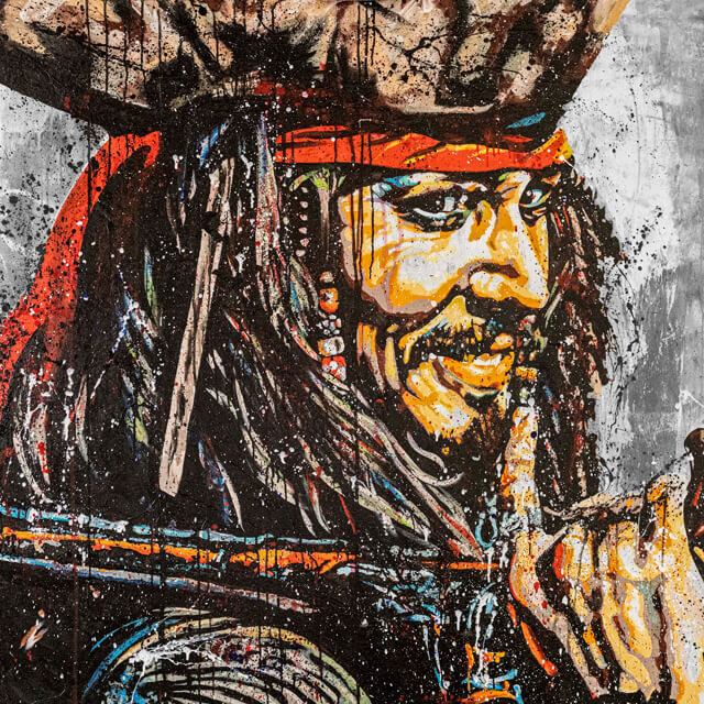 Elegant yet edgy. Close up portraits of cultural influences like RBG, Eminem, and Bob Marley capture expressions that represent the icons This black and white pop art has artistic drips of water running over the portrait, creating emotion unique to each subject.