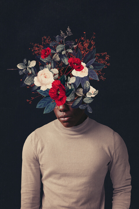 Frank Moth is a duo based in Thessaloniki, Greece that uses the collage technique to create vintage surreal compositions and retro pop floral portraits in distinctive color palettes that make up his critically acclaimed style. His artworks revolve around the effort of man to find a balance between nostalgia and the distant future. In an attempt to create harmony between people and their surroundings or feelings, he uses eternal elements of colors, flowers, geometric shapes and touches universal concepts like Love, Eternity, Humility, and Remembrance. Frank Moth’s work has been featured in many art and design publications worldwide like Colossal, Design Milk, Contemporary Art Curator, Buzzfeed and more.