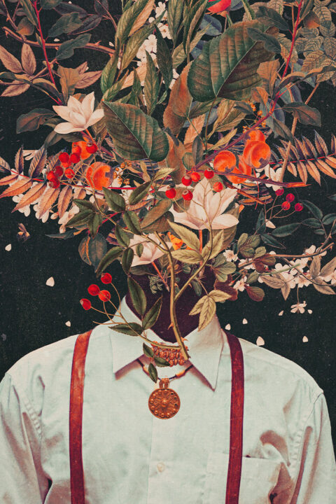 Frank Moth is a duo based in Thessaloniki, Greece that uses the collage technique to create vintage surreal compositions and retro pop floral portraits in distinctive color palettes that make up his critically acclaimed style. His artworks revolve around the effort of man to find a balance between nostalgia and the distant future. In an attempt to create harmony between people and their surroundings or feelings, he uses eternal elements of colors, flowers, geometric shapes and touches universal concepts like Love, Eternity, Humility, and Remembrance. Frank Moth’s work has been featured in many art and design publications worldwide like Colossal, Design Milk, Contemporary Art Curator, Buzzfeed and more.