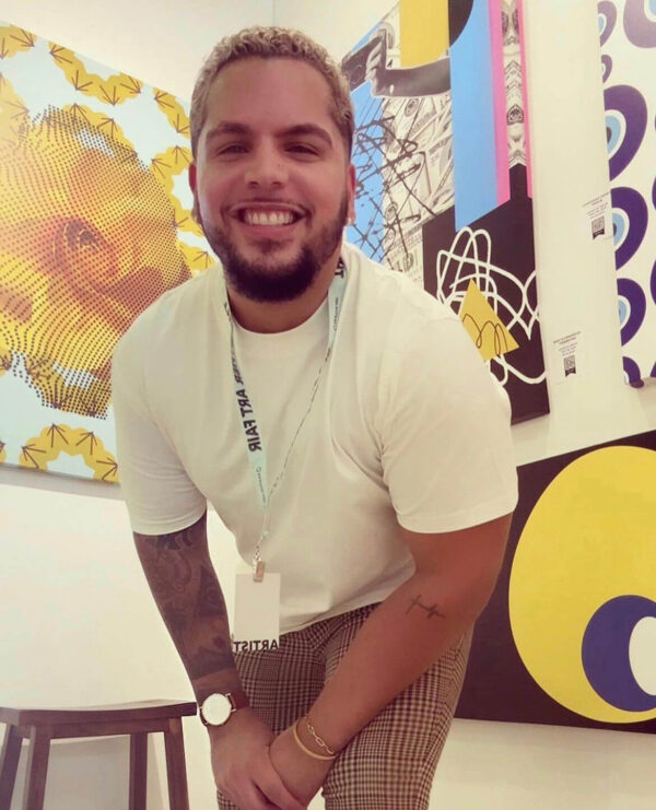 George Rosaly creates paintings, mixed media art, and digital art of abstract collages featuring geometric shapes, palm trees, lips, and more. Reflecting his interest in pop culture with surrealism, he evokes feelings of “empowerment, love, unity, hope, and eternity”. From bohemian desserts to cloudy awakenings to the power of optimism, his prints are full of funk.