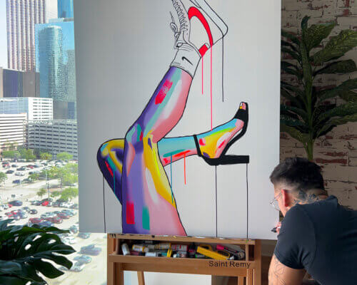 IR Artwork is a Houston based self-taught artist who composes contemporary, pop-art and abstract depictions of iconic personalities and subjects. He is known for his unique color-blocking and textural style best exemplified in his engrossing canvas and mural pieces.