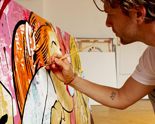 Michiel Folkers is a mixed media artist living and working in Amsterdam. His work is spread all over the world and he exhibits in galleries from Zurich to New York. He is best known for his layered paintings, large canvases in which he combines colorful street posters with spray paint and acrylics.
