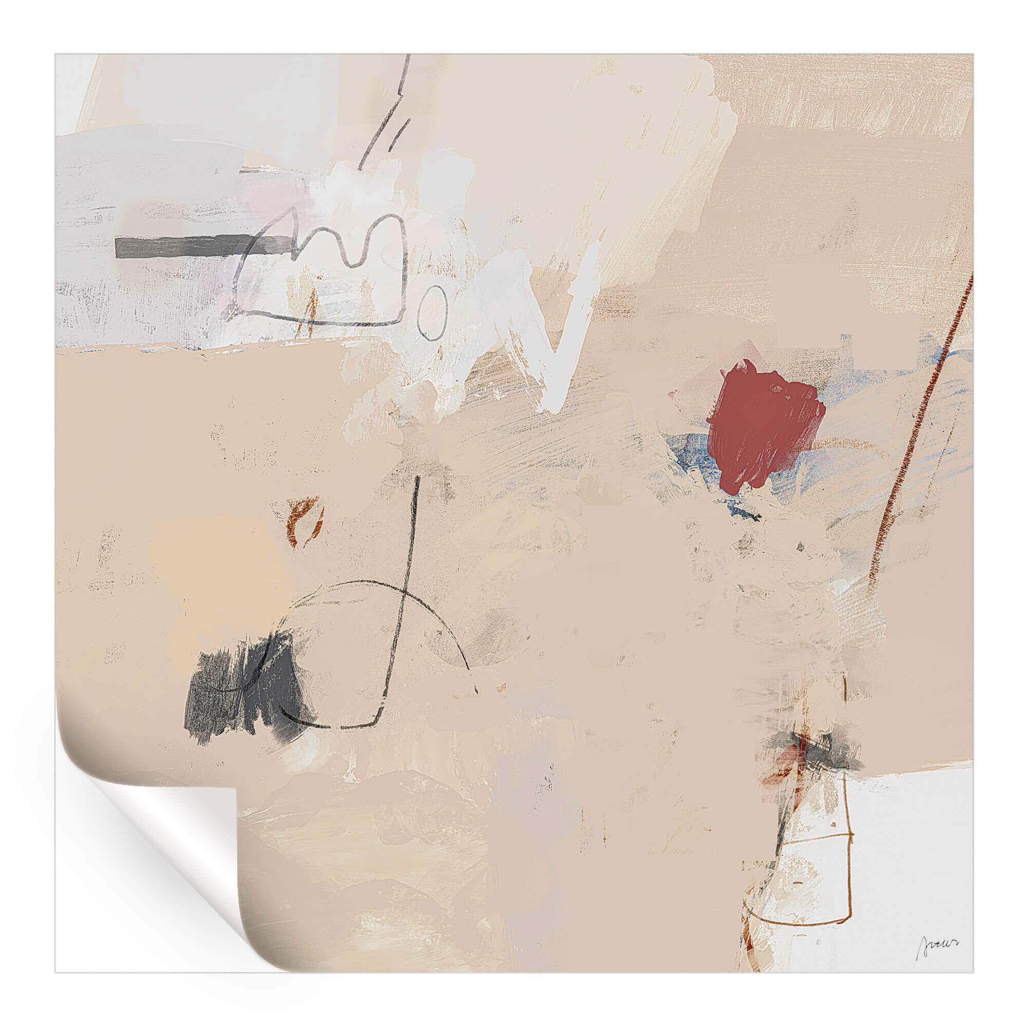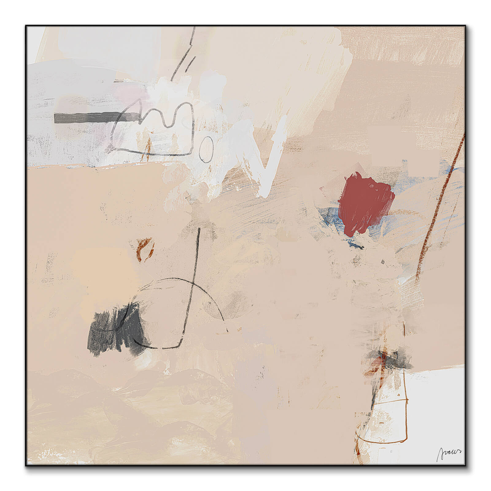The neutral beige tone and calm energy make this painting an easy anchor for a serene large wall art for living room scheme, yet its square layout also centers a mindful wall art for bedroom. In kitchens or dining rooms the subtle color keeps the palette open while the pop of red offers just enough personality. A custom photo collage print can accompany the work for a tailored gallery. Shoppers exploring our abstract category will find similar calming beige prints that share this poised minimalism.