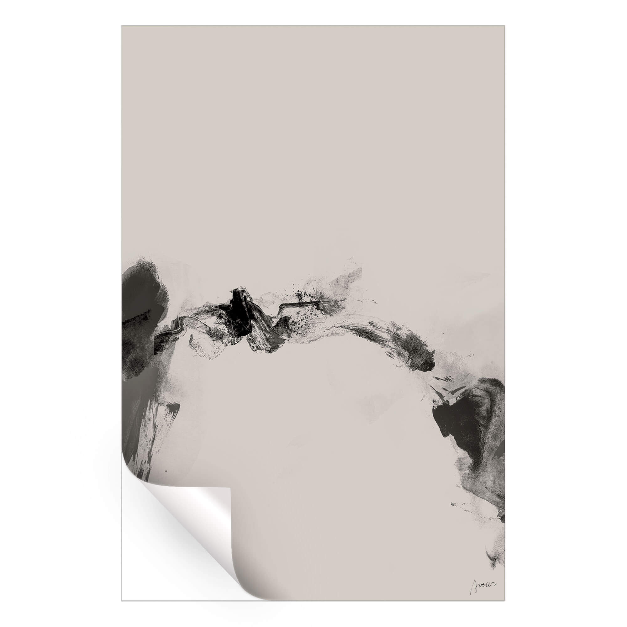 Swirling black and grey strokes sweep across a neutral expanse, suggesting a moment of intense energy frozen in time. The forms connect and diverge, creating a dynamic sense of tension and release, a visual representation of a dance between opposites.