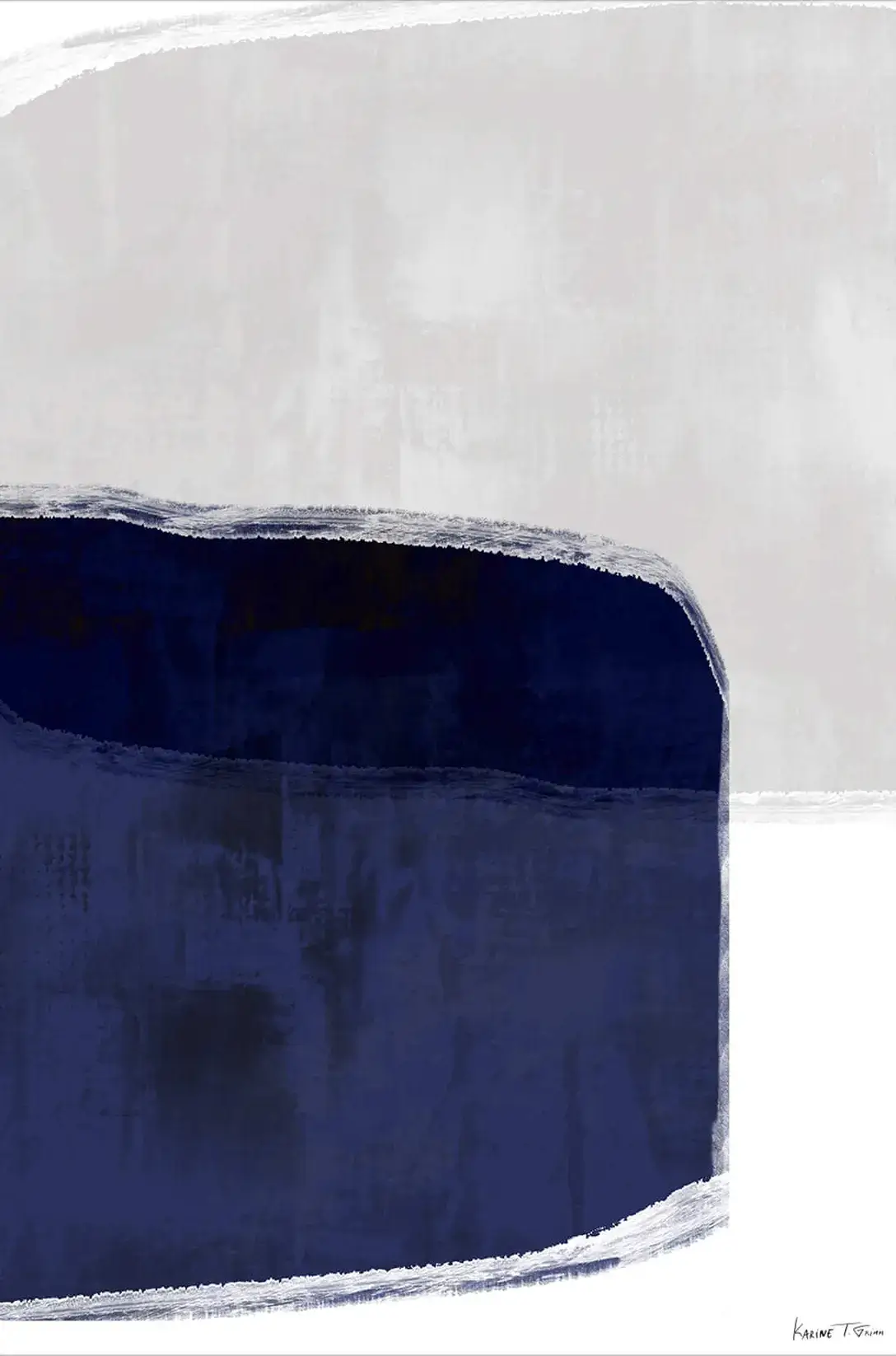 A commanding sweep of deep navy crowns its space, a rich hue bleeding slightly into the textured grey above. The boundary between the two is both definite and diffused, allowing for a visual tension that is both distinct and harmonious.