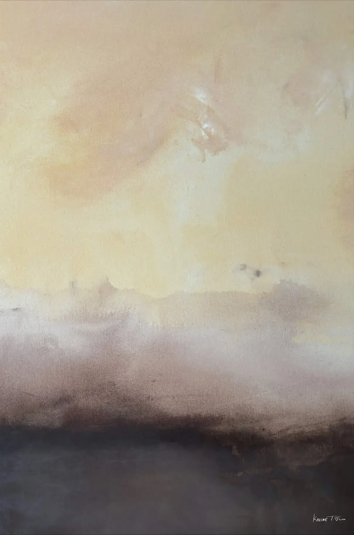 Gentle gradients of soft, muted tones covey a sense of a mediation and serenity. Warm, creamy hues, gradually transition into deeper, earthy browns at the bottom. The subtle blending of colors creates an impression of a distant, foggy horizon.