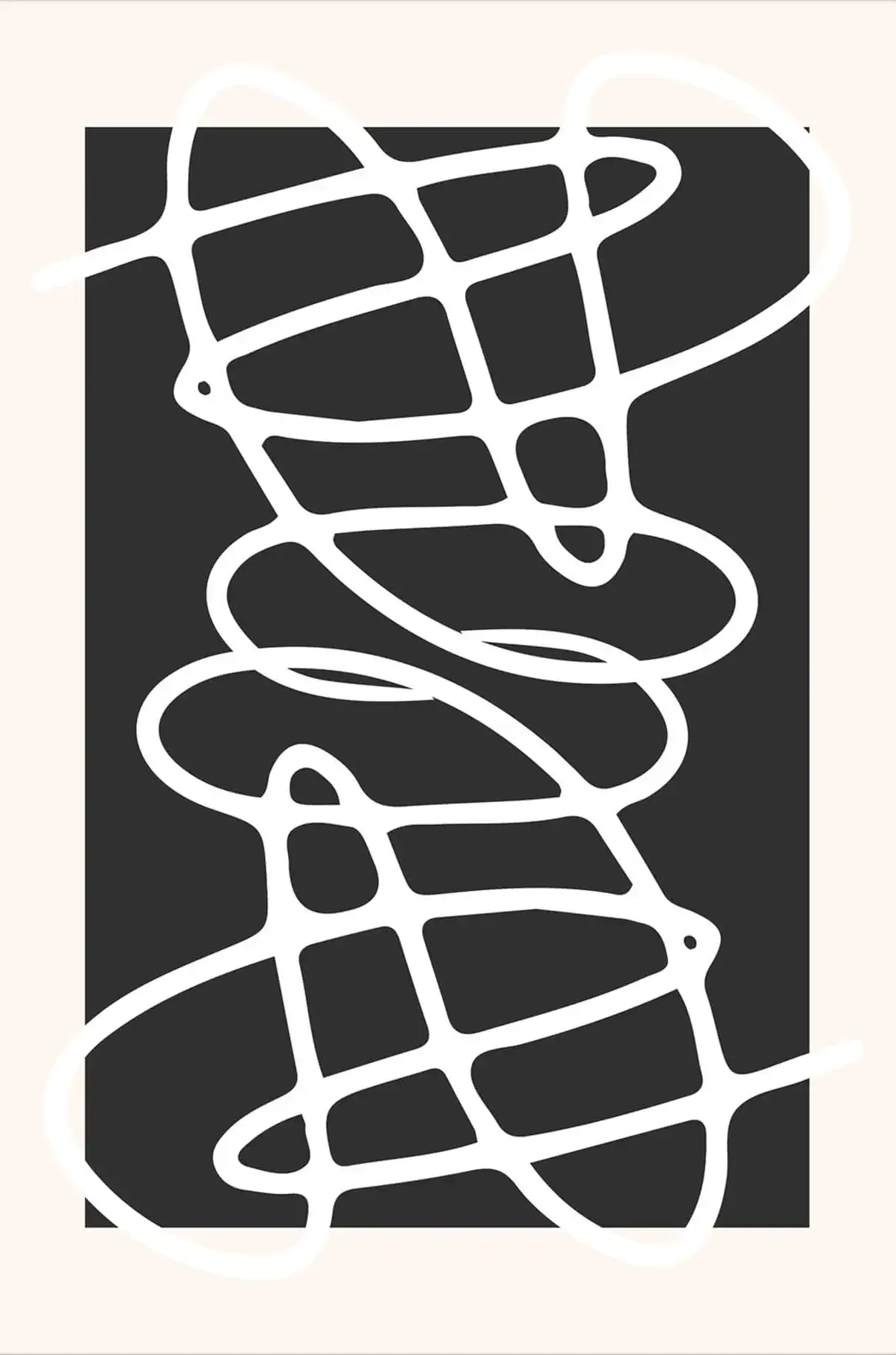 The seemingly spontaneous strokes invite a contemplative look, drawing the viewer into a labyrinth of curves and lines. The simplicity of the color scheme lends the piece a dramatic and modern feel, perfect for contemporary spaces looking for a touch of abstract expressionism. It’s an artful accent that complements a minimalist décor or adds a creative spark to a more traditional setting.