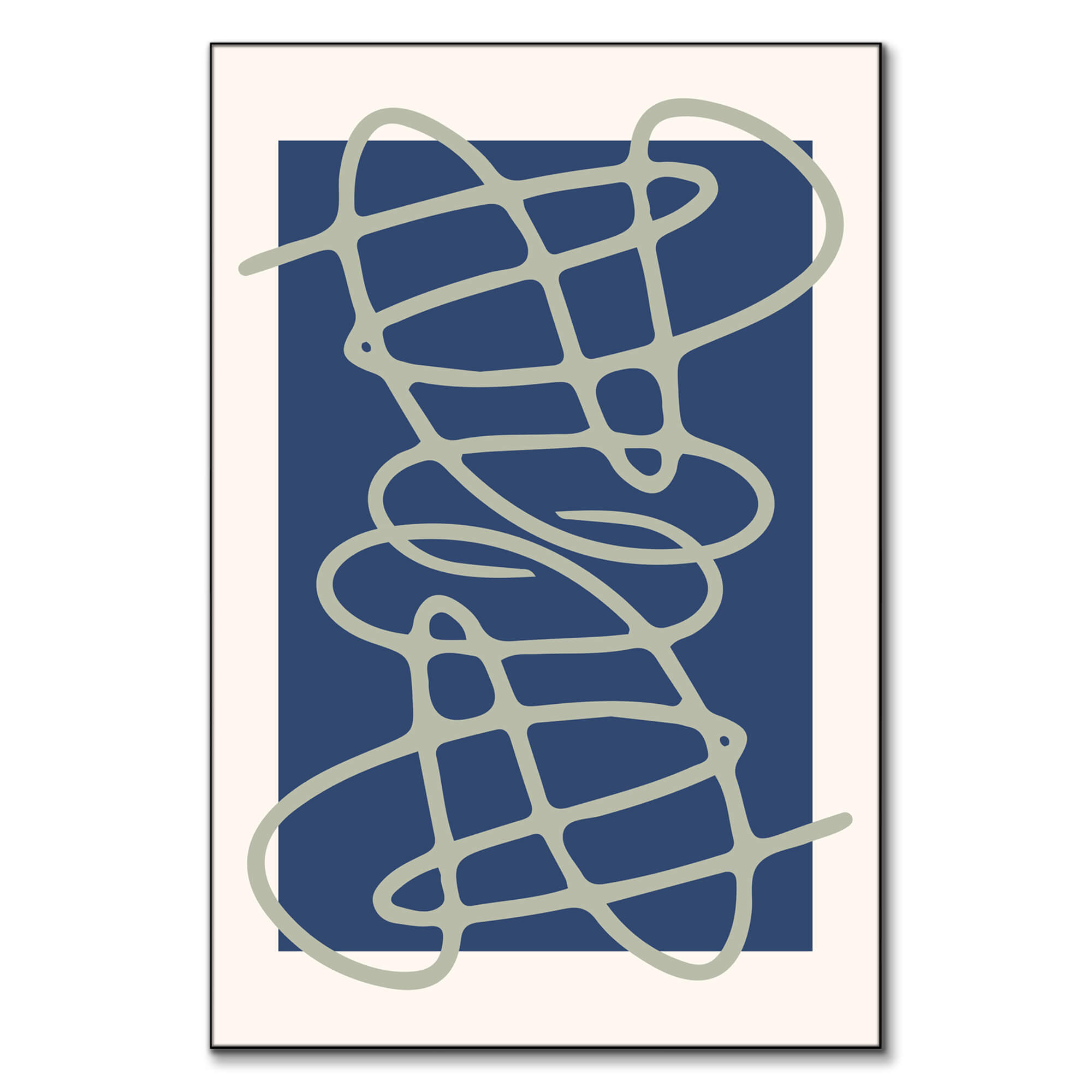 The cool blue tone of the background provides a calming effect, making this piece a suitable addition to spaces meant for relaxation or reflection. This artwork would serve as a unique focal point in any modern interior, bringing with it a touch of abstract intrigue and a dash of elegance.