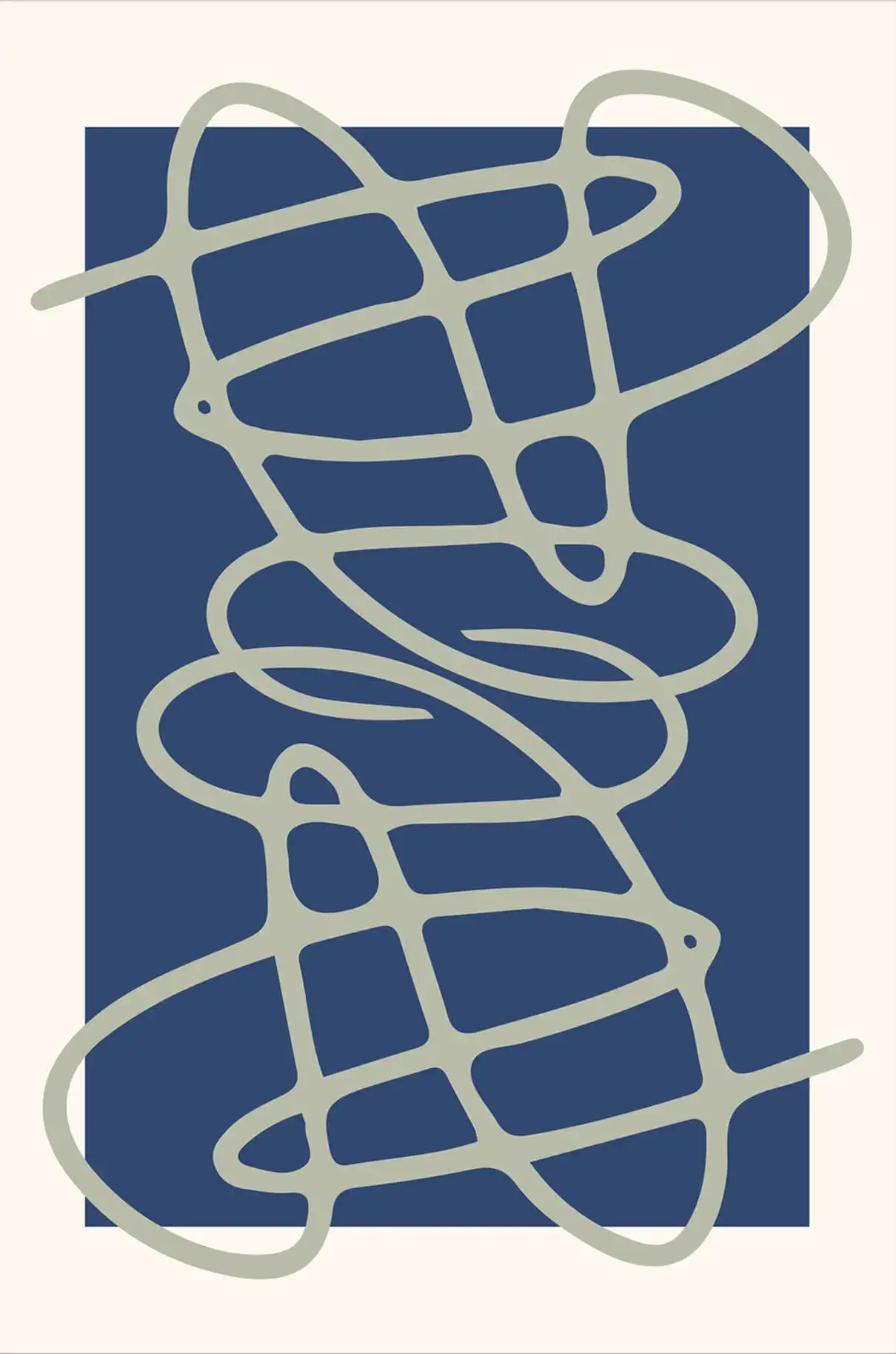 A series of light-colored scribbles move wildly across a deep blue background. The organic and loose form of the lines creates a stark yet harmonious contrast against the solid backdrop, offering a visual representation of freedom and spontaneity.