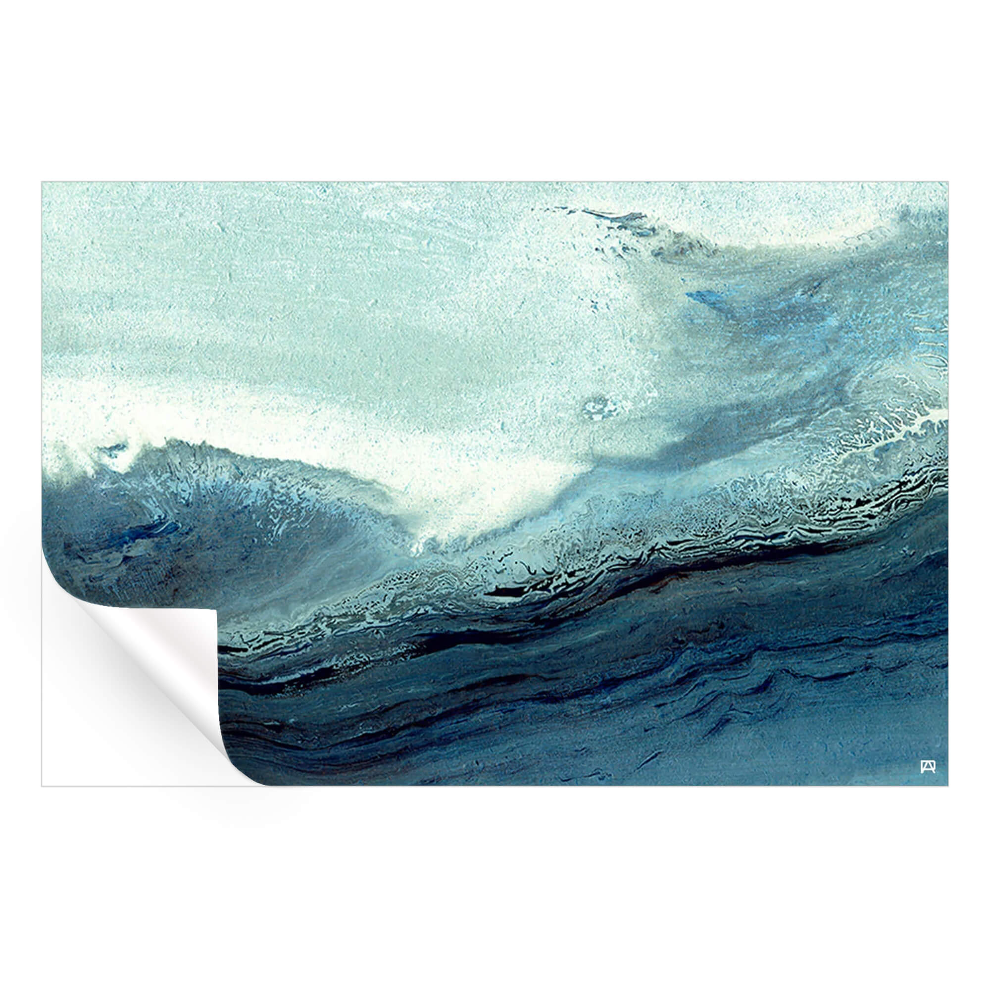 The Wave belongs to our coastal abstract collection, an ideal choice when you want serenity without literal shell imagery. In an open concept living area, the wide horizontal format acts like a window, pairing effortlessly with large wall art for living room spaces. A scaled down 32″x48″ print brings a calming tide to a bedroom wall art retreat, while Stickablez makes moisture-safe décor for the bathroom or kitchen. If you prefer something more personal, our custom wall art photo collage service can match this piece in size and framing.