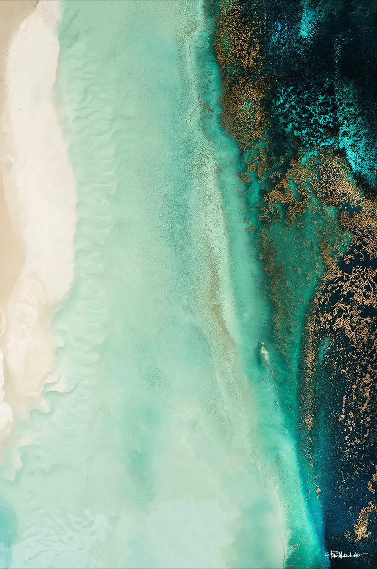Bring the beauty of the coast into your home with this aerial coastal abstract ocean art. Featuring soft turquoise waves meeting sandy shores, this abstract painting captures the serene yet dynamic energy of the ocean from above. The rich blending of blues, greens, and sandy whites creates a calming atmosphere that evokes the peacefulness of nature. Ideal for adding a touch of tranquility to any modern or coastal-themed room, this abstract wave painting will transform your space into a soothing, artistic retreat.