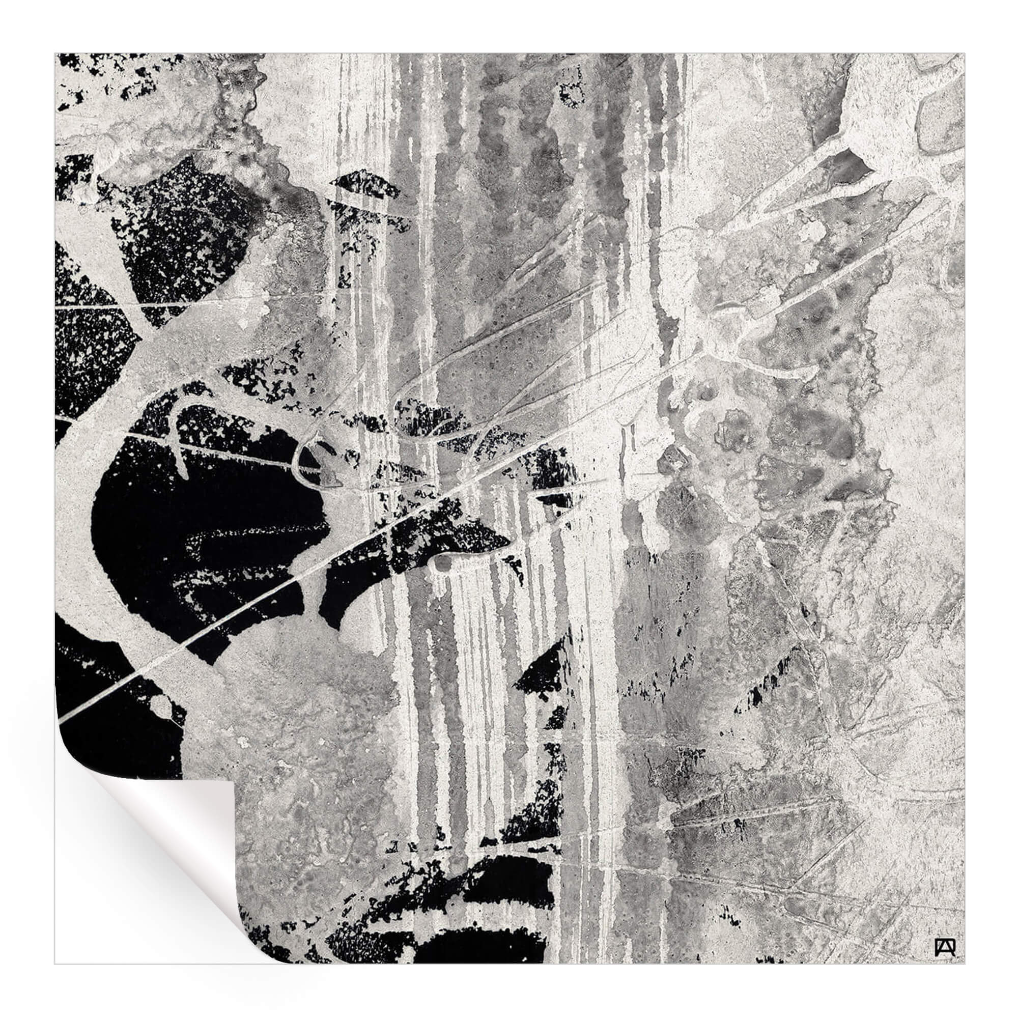 The artwork has an industrial yet expressive feel, with some elements like splatters and drips appearing more deliberate and structured than spontaneous.
