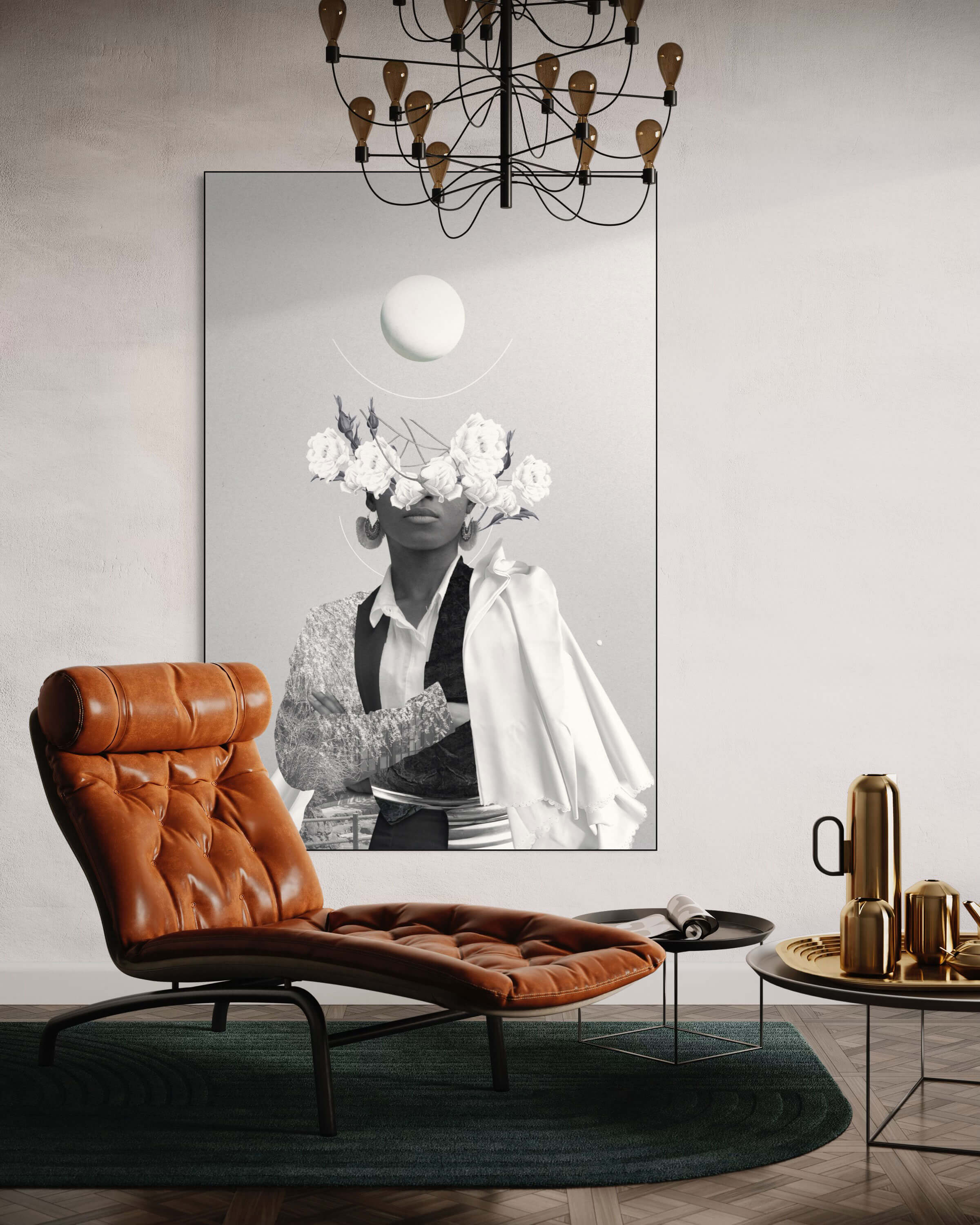 The composition feels timeless—equal parts modern design and classical grace. Every detail, from the petals’ softness to the profile’s quiet strength, creates an atmosphere of introspection and beauty.