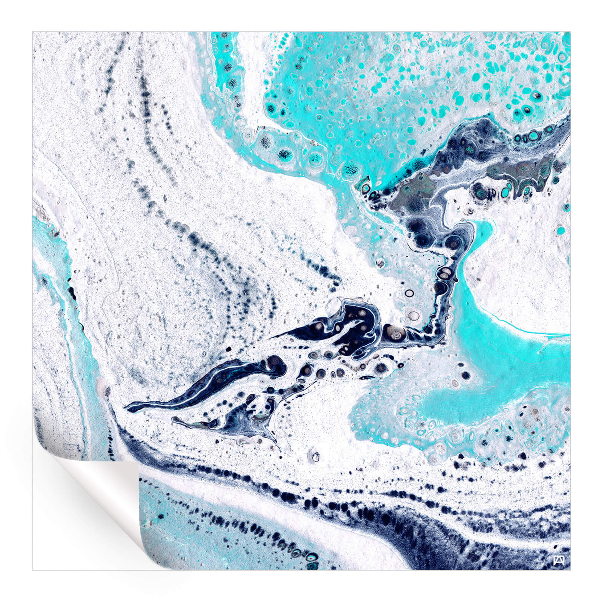 Swirls of turquoise and white, intermingled with darker shades create intricate patterns resembling marble.