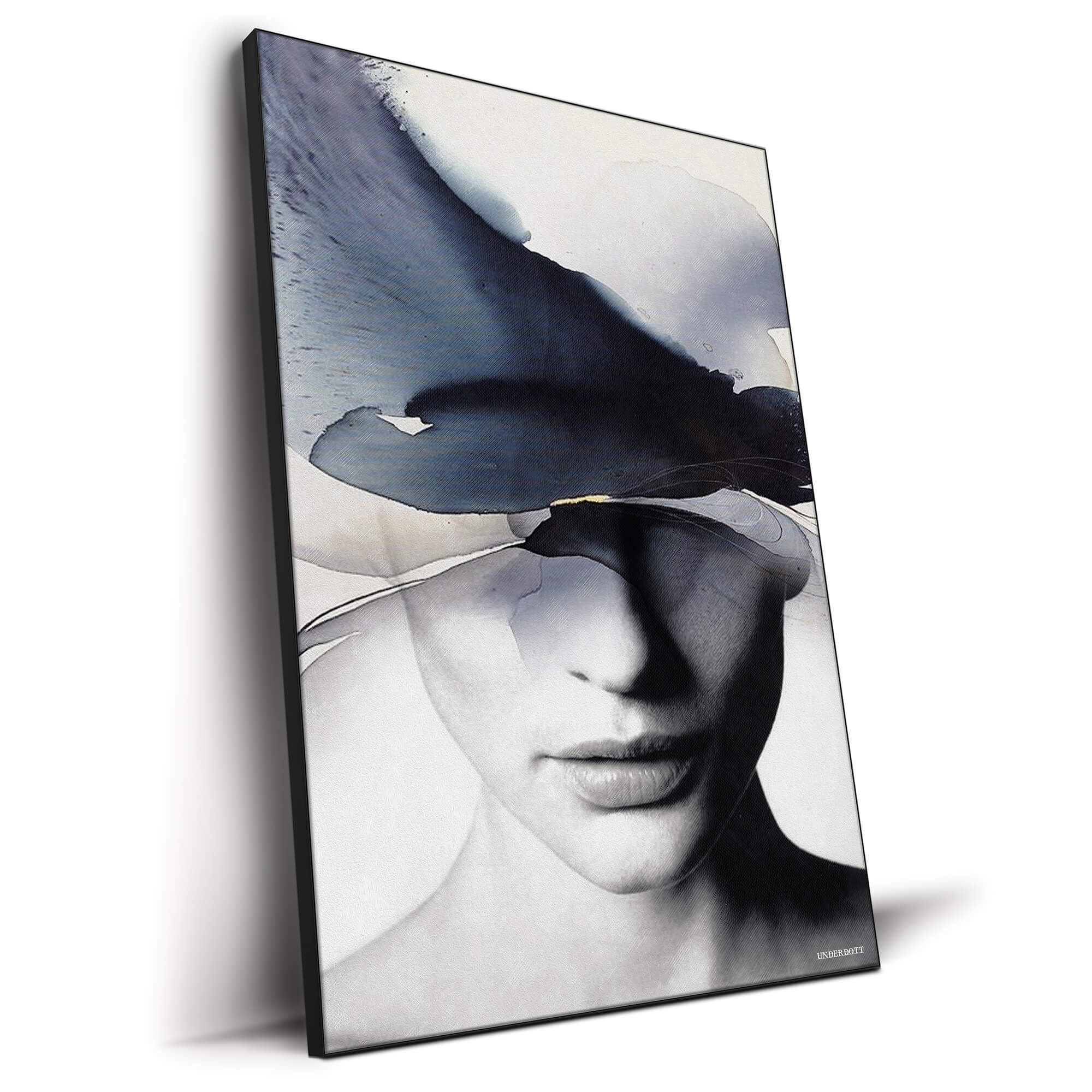 Underdott – the French indie creator behind the work – blends fashion photography, ink washes, and minimal color to craft quiet narratives. View more of her atmospheric imagery on the Underdott art page. Her pieces often hide the eyes and let abstract forms speak, perfectly matching the calm, dream state on display here. Printed edge-to-edge on patented fabric, the image keeps the delicate balance of shadow and blue that defines her style.