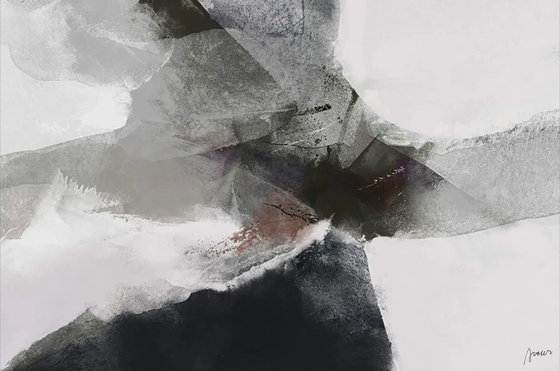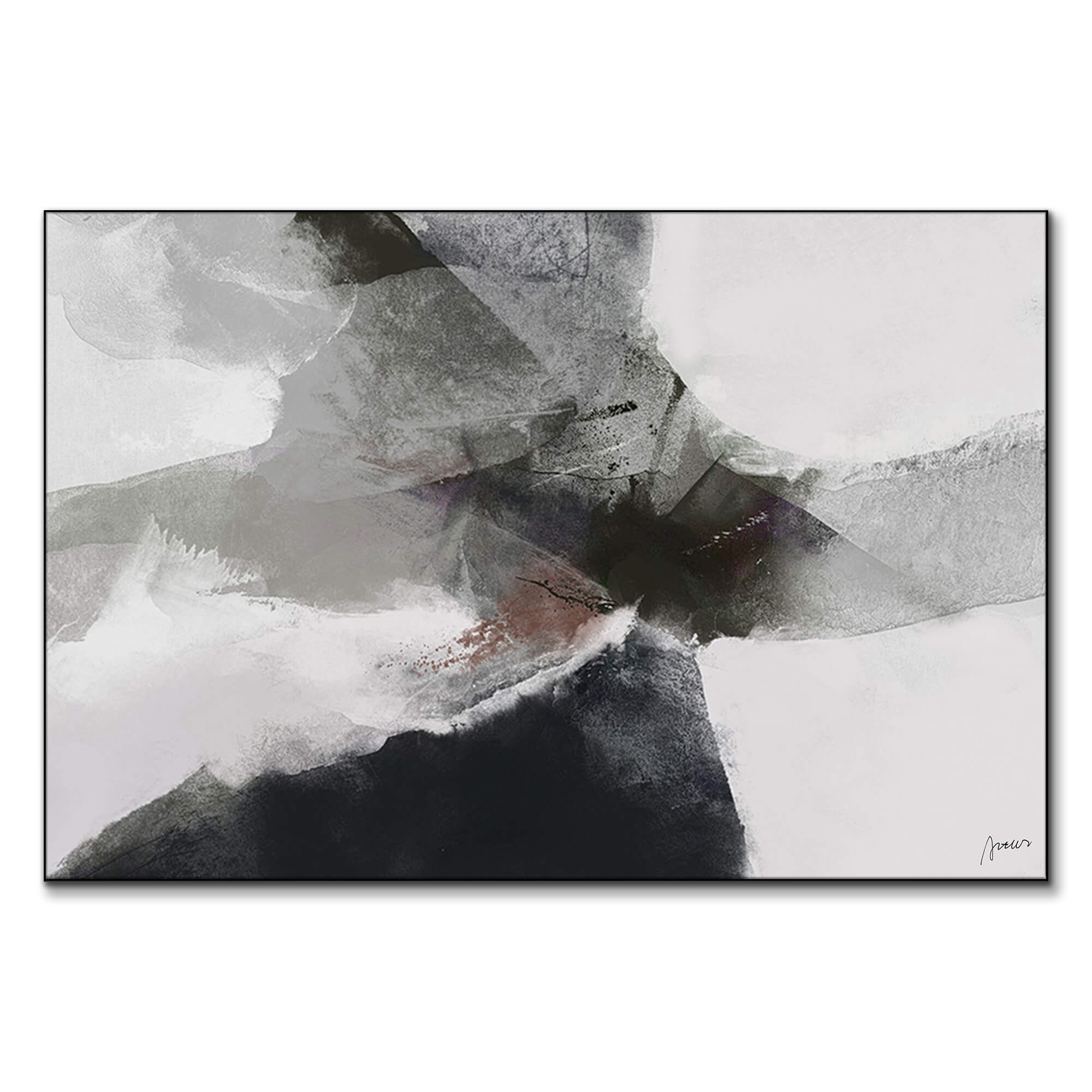 This piece explores the clash of black and grey hues, where the bold strokes create a sense of tension and energy. The thick painted marks seem to collide with each other, while delicate washes of grey offer subtle transitions. The overall composition gives off a modern and raw aesthetic, perfect for spaces needing an edge of contemporary expression.