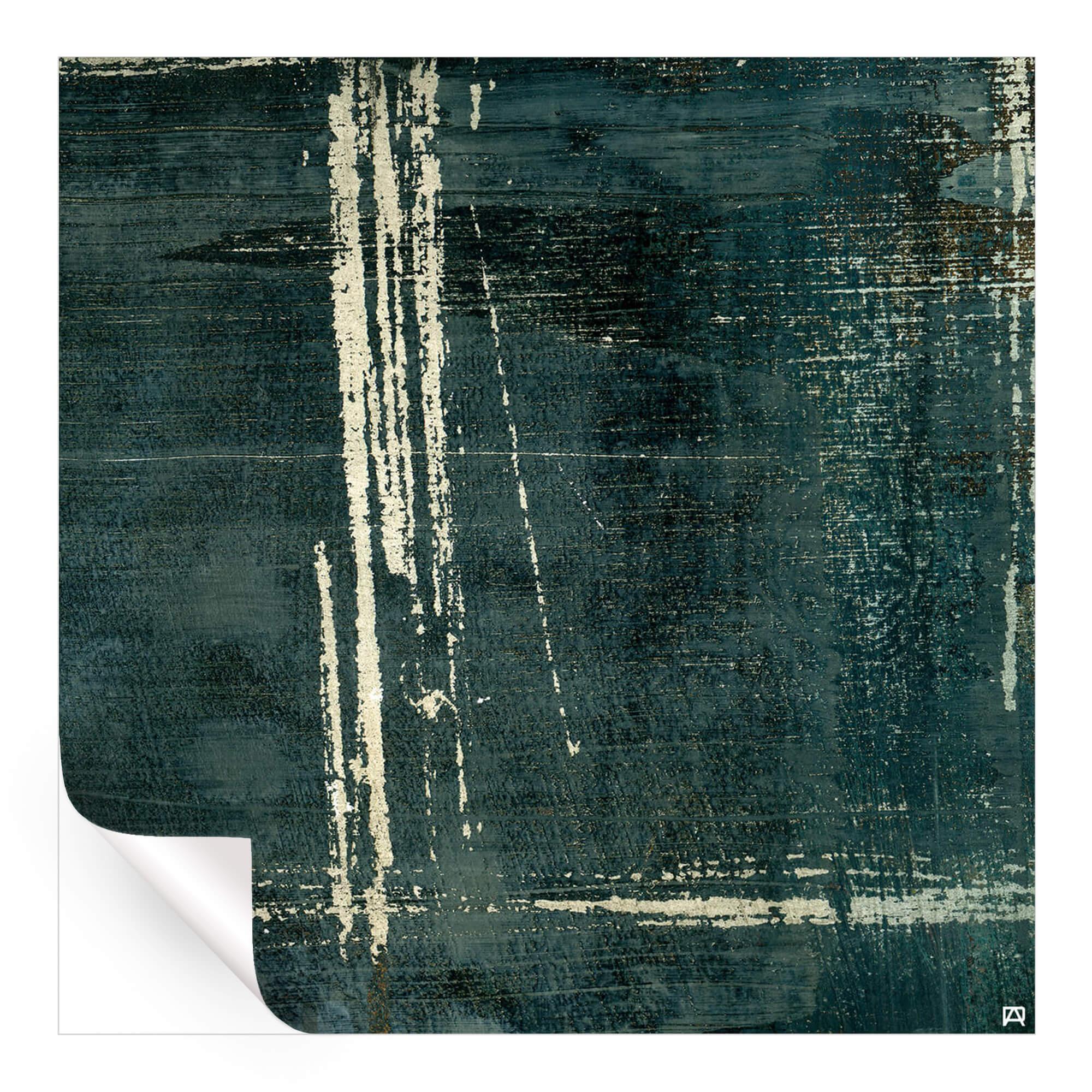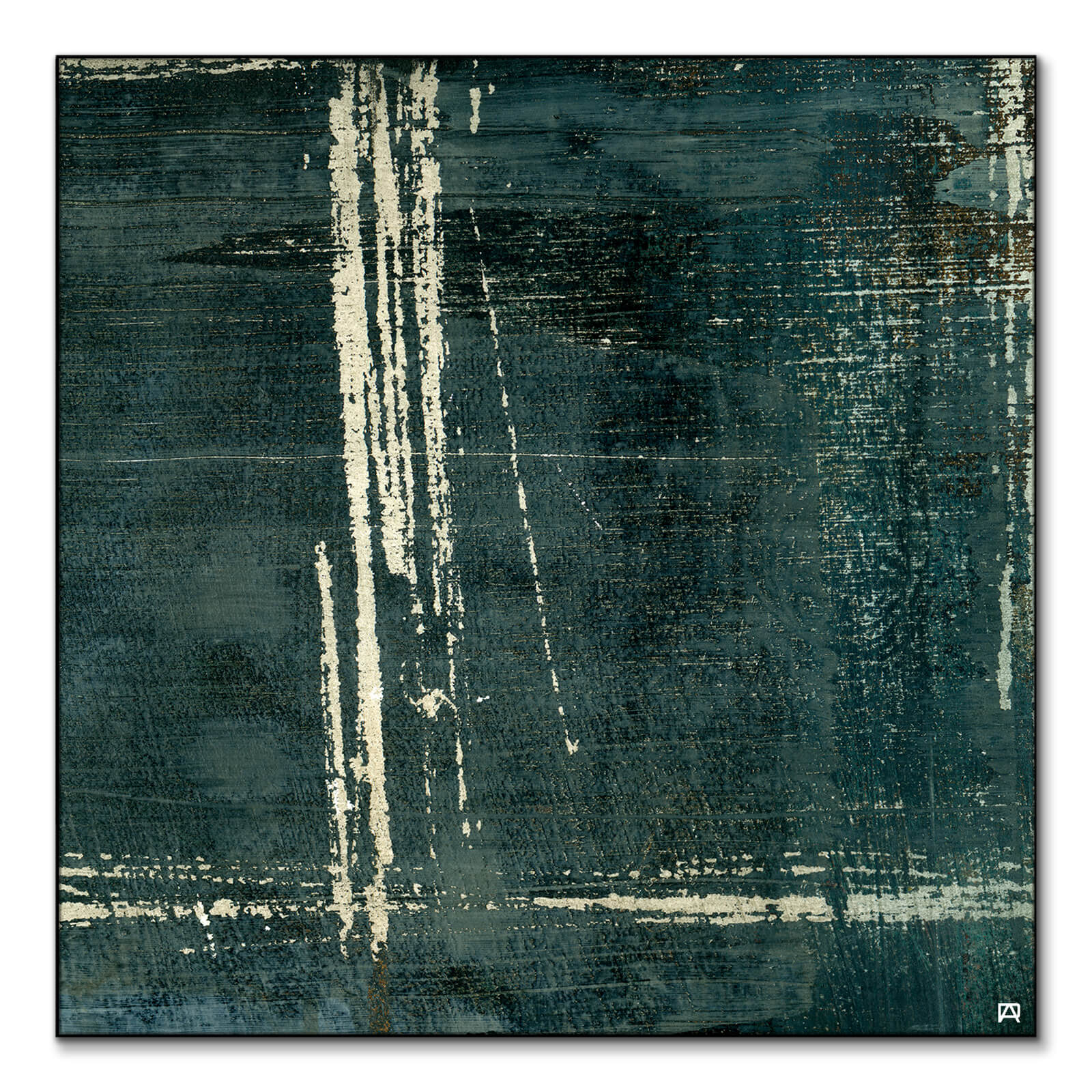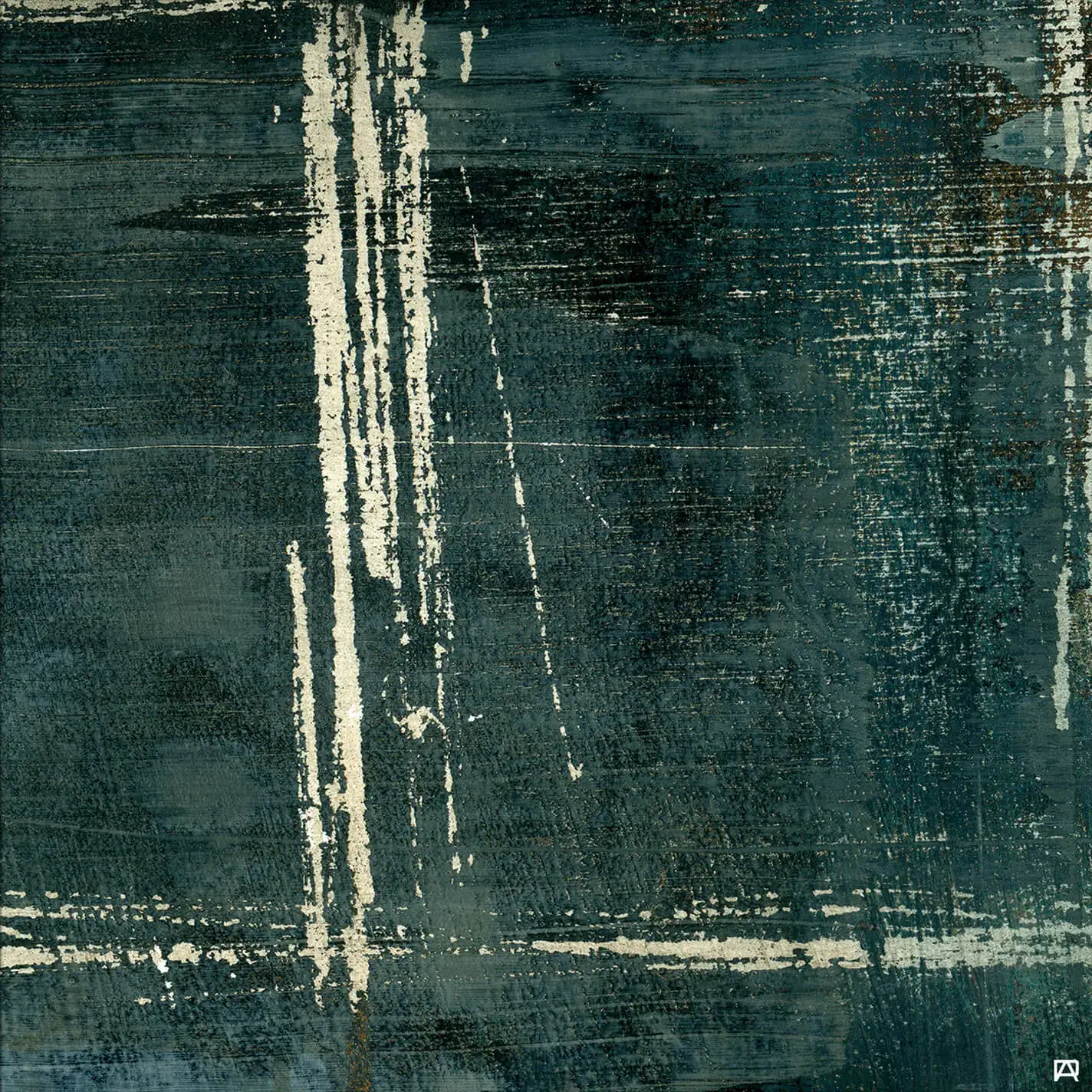 Dark, deep green conveys the sensation of a weathered surface, while vertical streaks of cream cascade down the center.