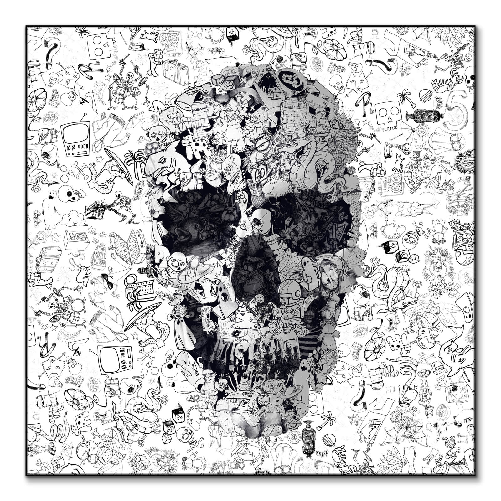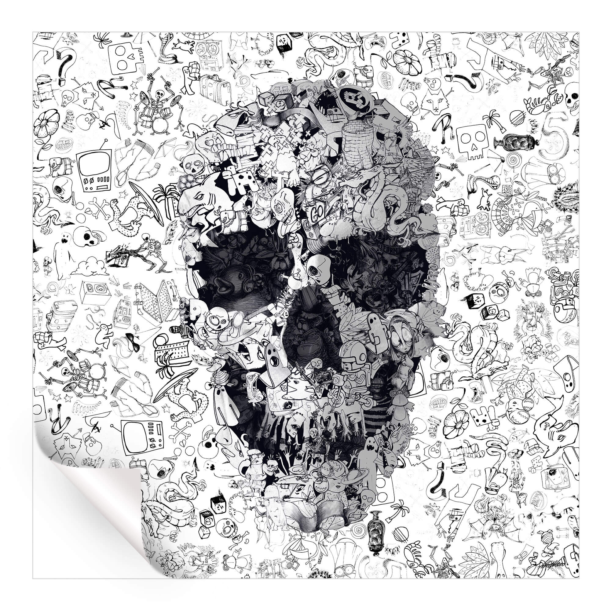 The doodle skull stands as a quirky symbol of creativity’s power to find order in disorder.