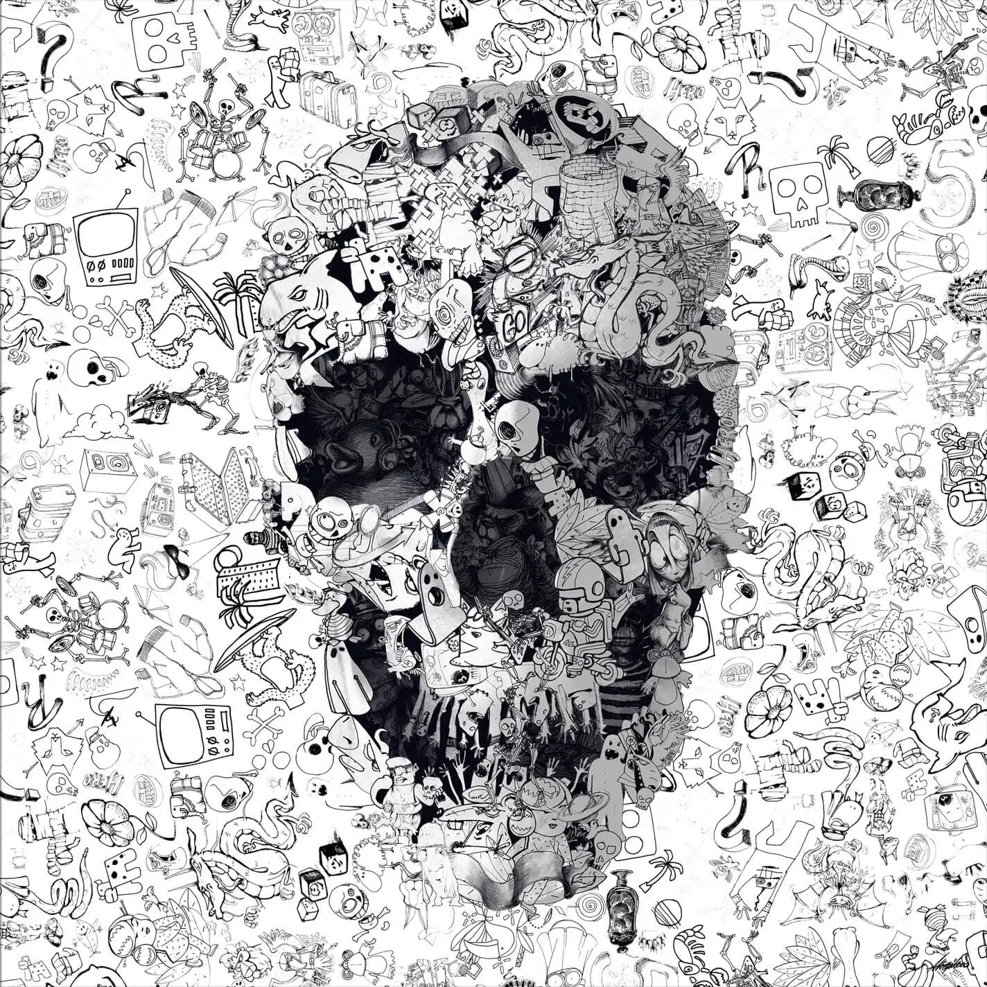 Ali Gulec’s artwork is a playful mosaic of doodles, forming a skull that gazes out from a canvas of chaos. Each line and squiggle dances with its neighbors, creating a harmonious image from a jumble of ideas.