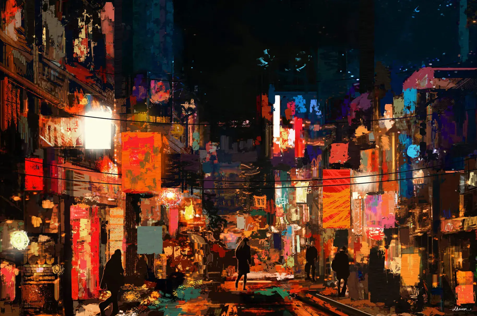 The thoroughfares buzz with kinetic energy, hinting at untold tales at every turn. In this place, the darkness is merely a canvas for the city’s true, vibrant pulse.