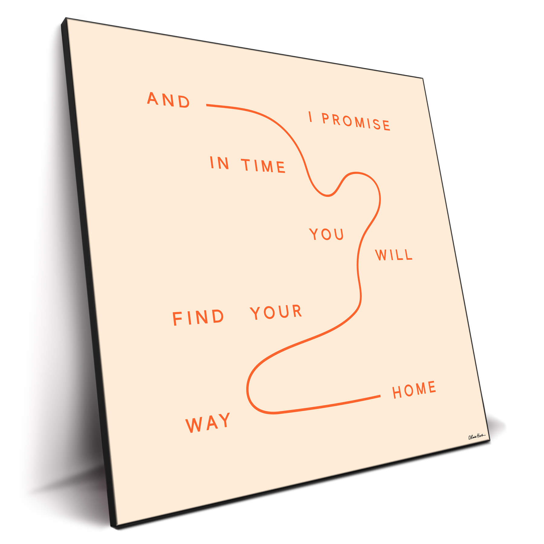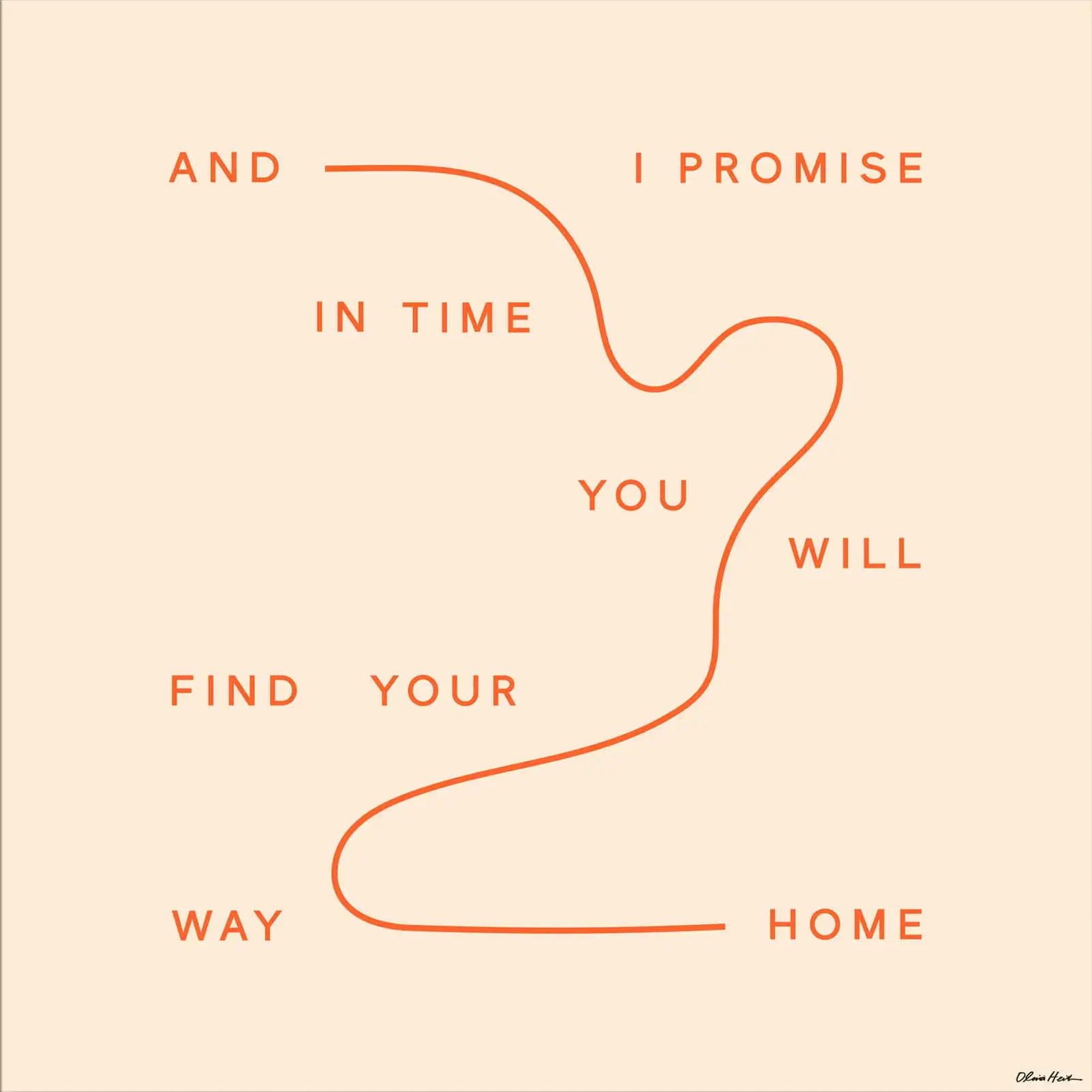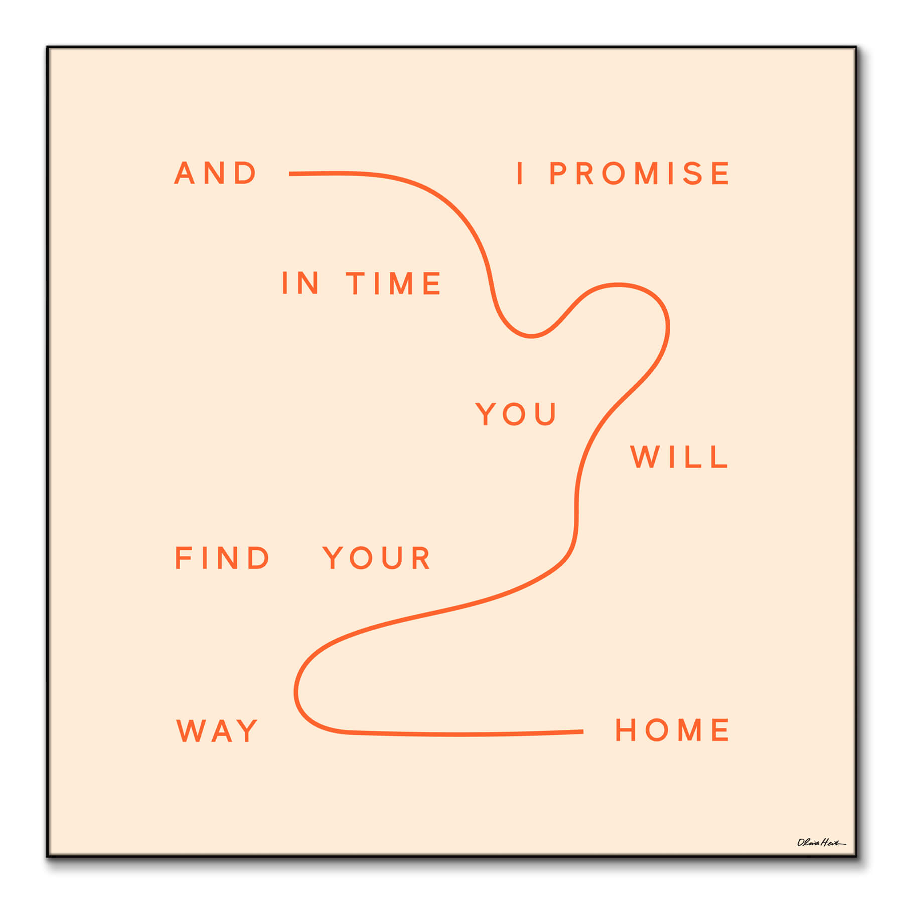 The message unfolds with each turn of the line: “And I promise in time you will find your way home,” offering a comforting assurance about the journey to self-discovery or return to one’s roots.
