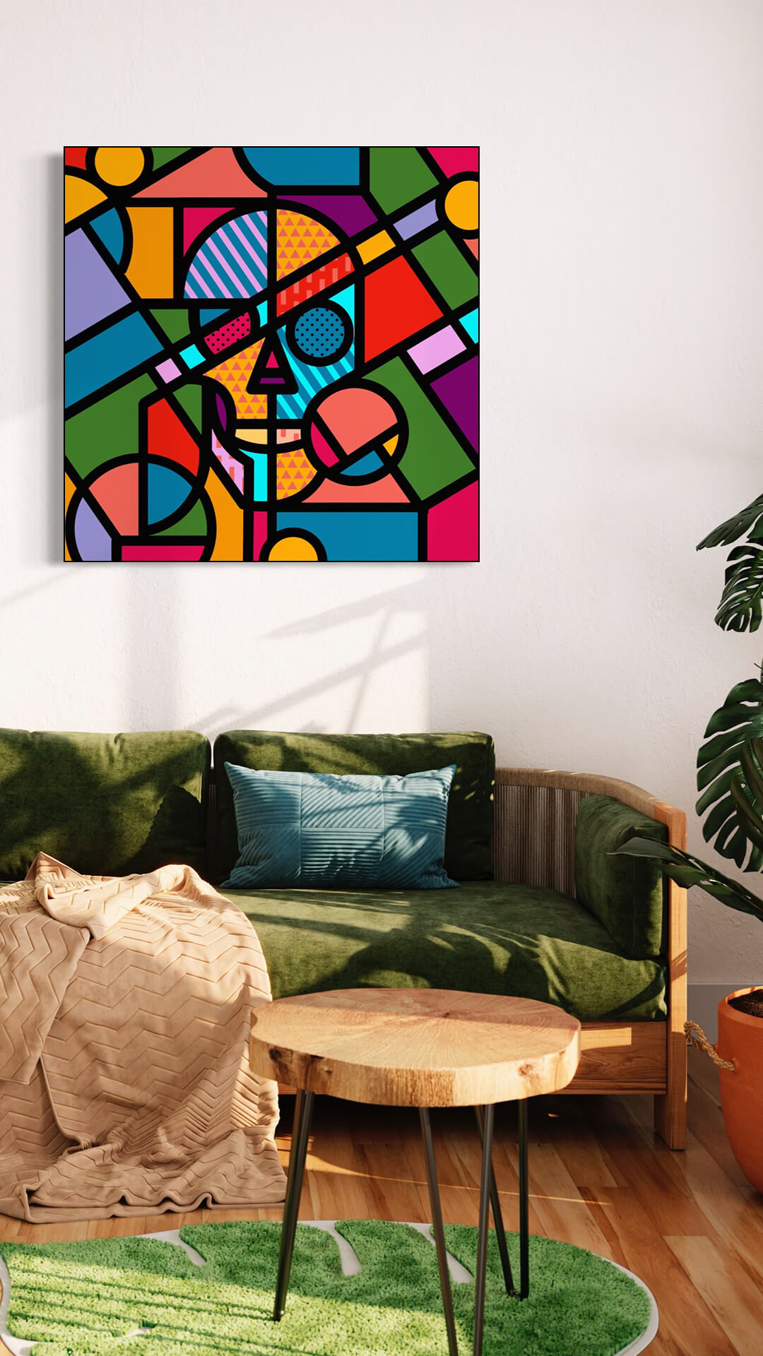 Through the use of bold colors and patterns, the skull pulses with a life of its own, inviting onlookers to find meaning in its abstract form.