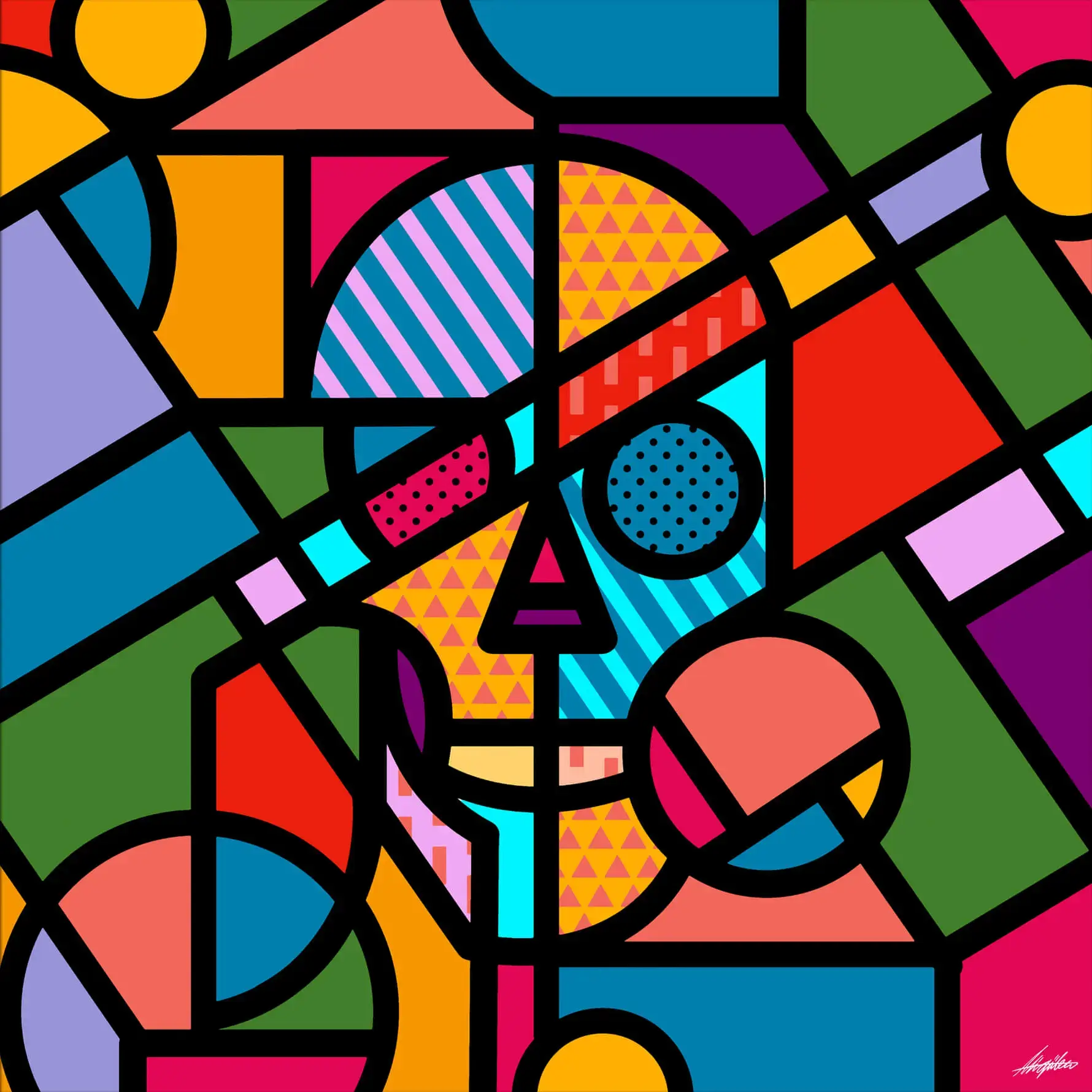 Ali Gulec’s artwork presents a skull composed of vibrant geometric shapes, each color and line coming together to form a mosaic of mortality. The image challenges the viewer, contrasting the permanence of death with the playful vibrancy of life.