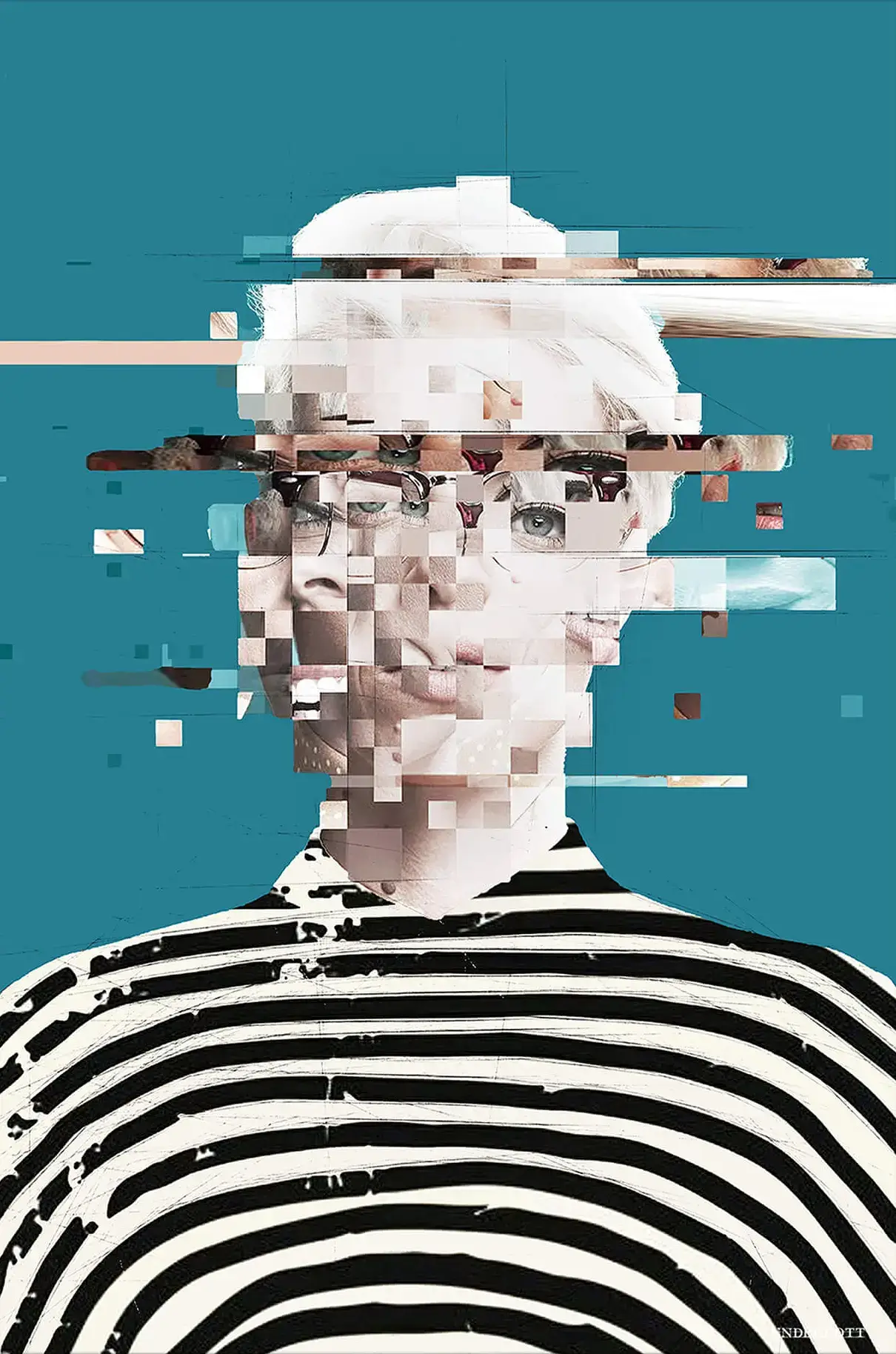 Underdott, a French digital artist known for glitch portraiture and rebellious pop culture references, created this piece. View more of her boundary-pushing prints on the Underdott art page. She frequently distorts familiar faces with pixel smears and color blocks, challenging the permanence of online identity. Pixelated Identity continues that dialogue, merging technical errors with bold fashion photography.