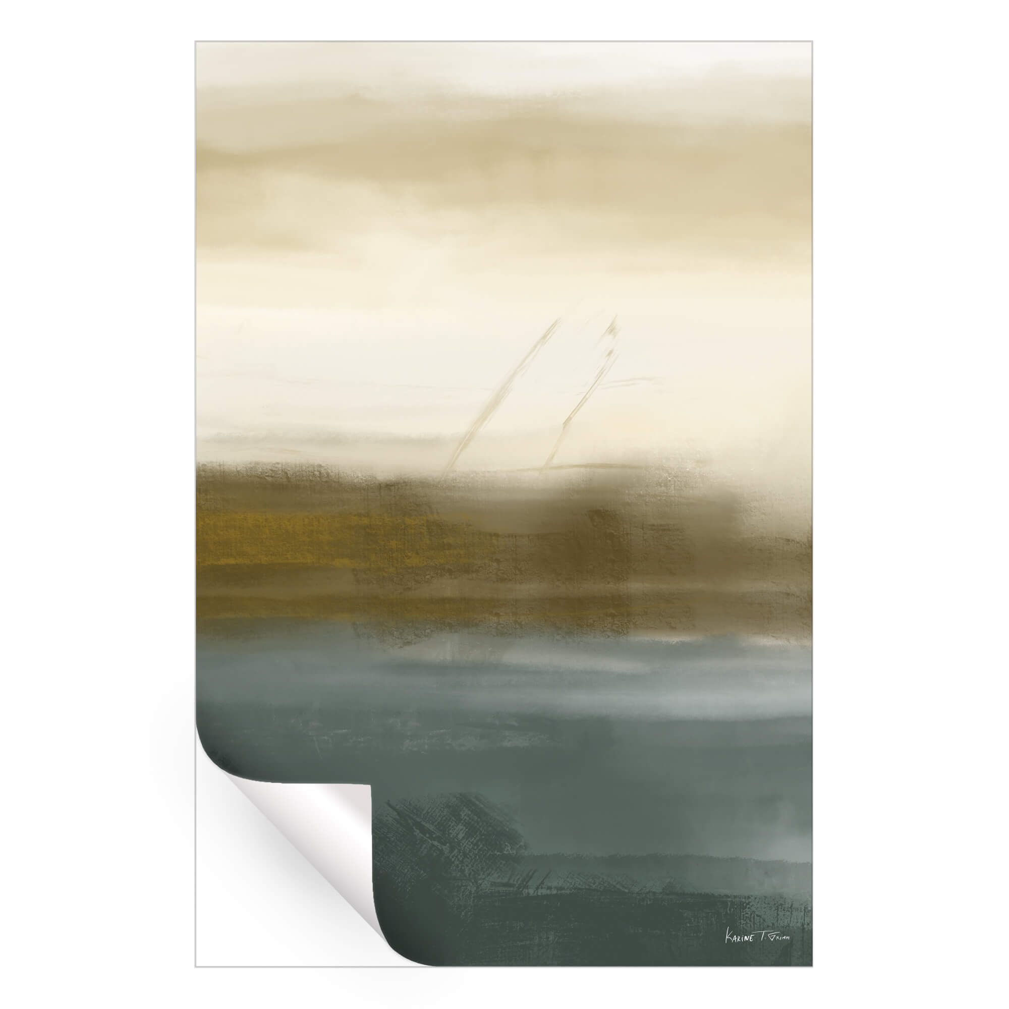 Soft layers of color blend into each other, giving this piece a calm, hazy vibe. Warm tan tones sit at the top, fading into soft ivory like early morning light. A muted band of earthy gold runs through the middle, adding warmth and breaking up the calm neutrals. Below, deep green and slate tones settle in like quiet water or a shaded field at dusk. The mix of smooth blends and subtle texture keeps it interesting without ever feeling loud or busy.