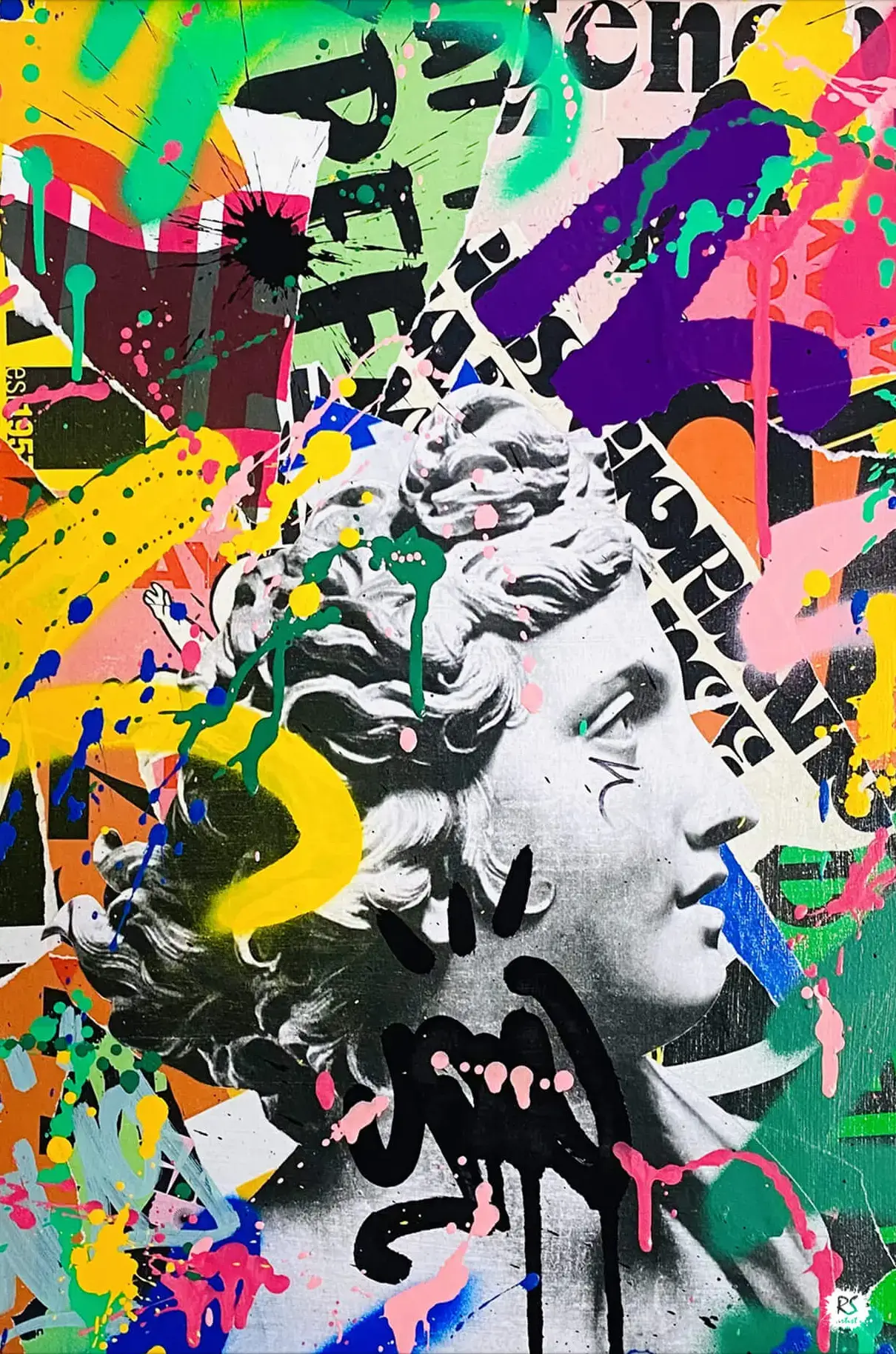 RS Artist is part of this new generation of artists combining both Pop Art and Street Art, delivering works in full colour, a clever mix of performance, strength and life.