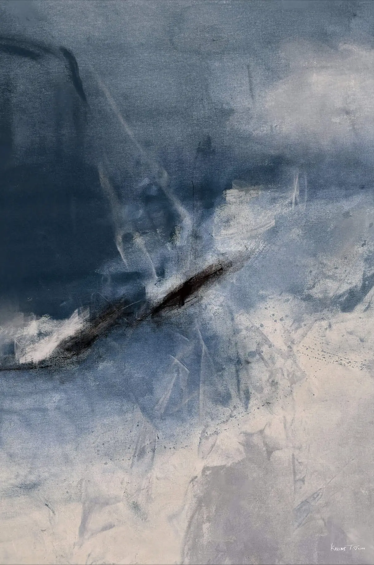 Gentle, flowing strokes of blues and grays invite viewers lose themselves in a quiet beauty reminiscent of the calmness of an early morning sea. Soft transitions between light and dark areas give the impression of depth and vastness. The subtle blending of colors and textures create a calm atmosphere, evoking feelings of peace.