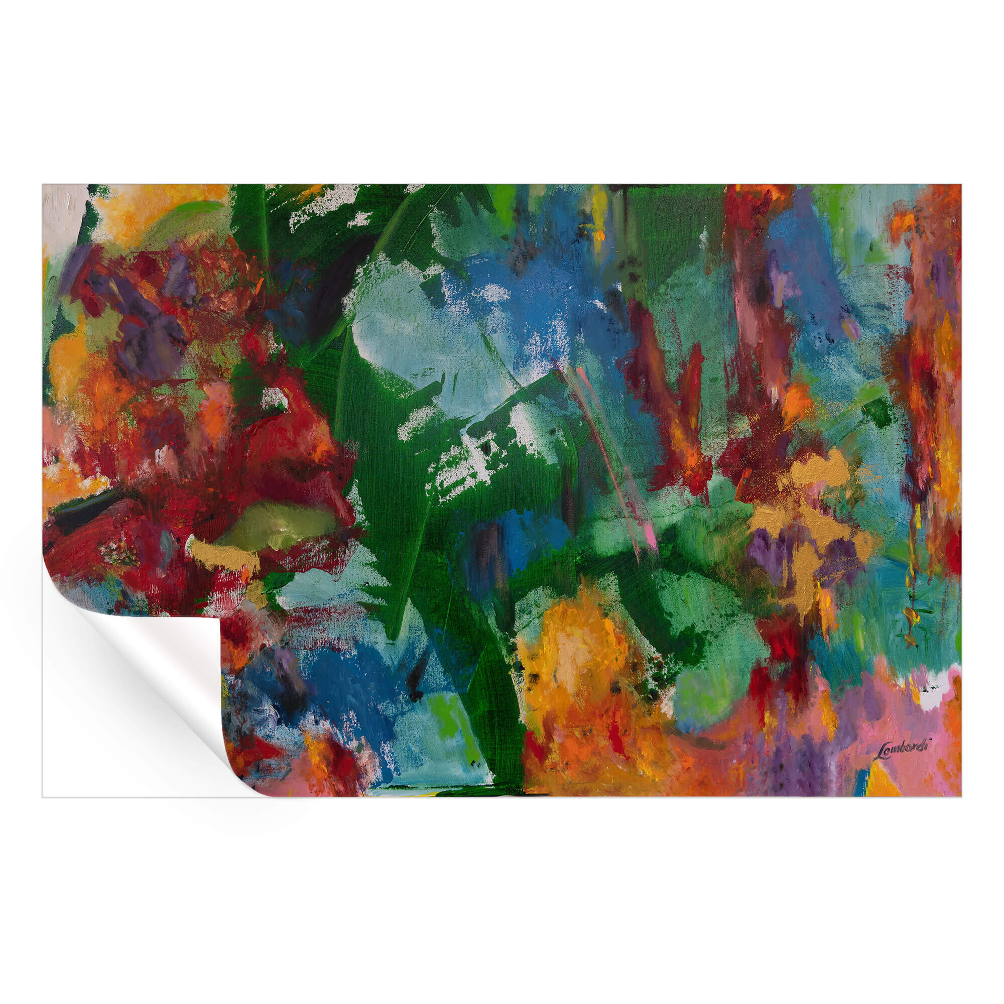 In the midst of this colorful dance, the brushstrokes of Bob Lombardi bring a sense of harmony and wildness together. It’s a snapshot of nature’s palette, where every hue plays a vital role in the visual tale.