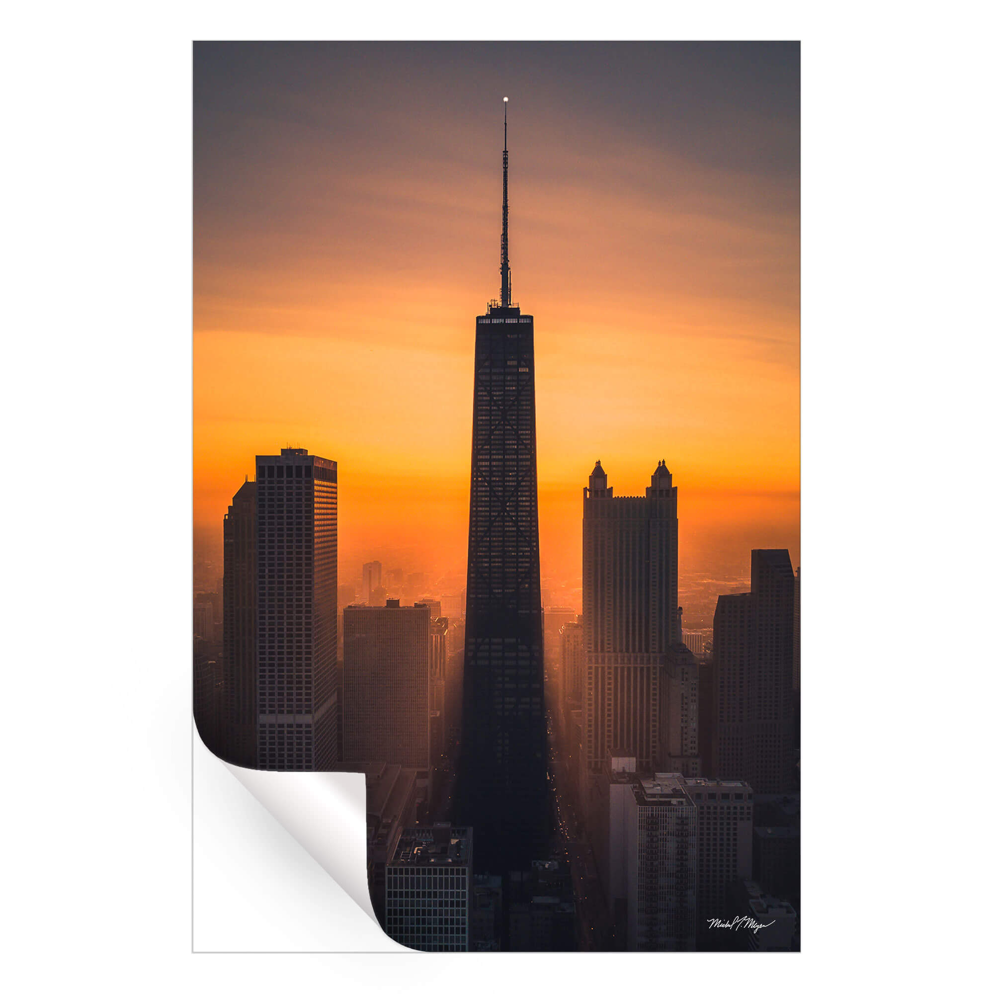 Below, the city begins to stir, its streets gradually illuminated by the day’s first light. This photograph by Michael Meyers captures the strength and grace of one of Chicago’s architectural giants, basking in the golden hour.