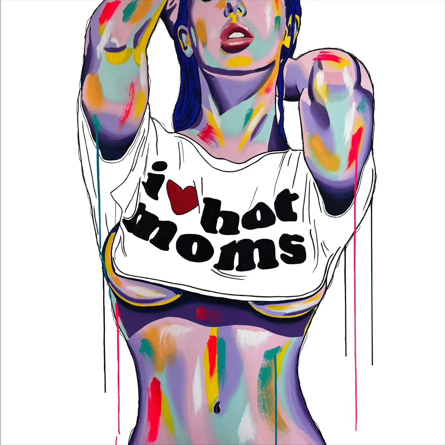 Depicting a stylized painting of a person with feminine features, this contemporary art painting boldly strikes an erotic pose.