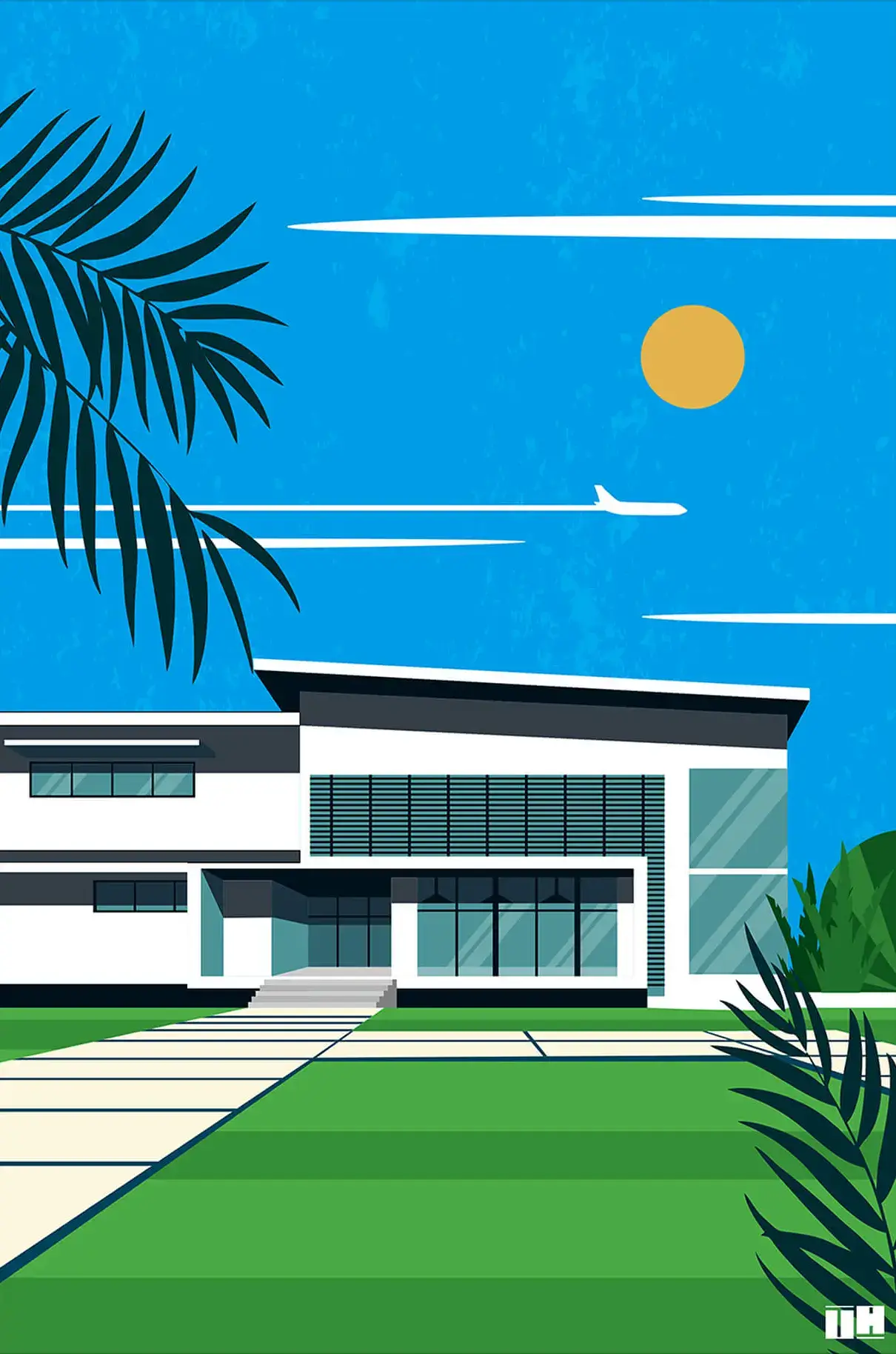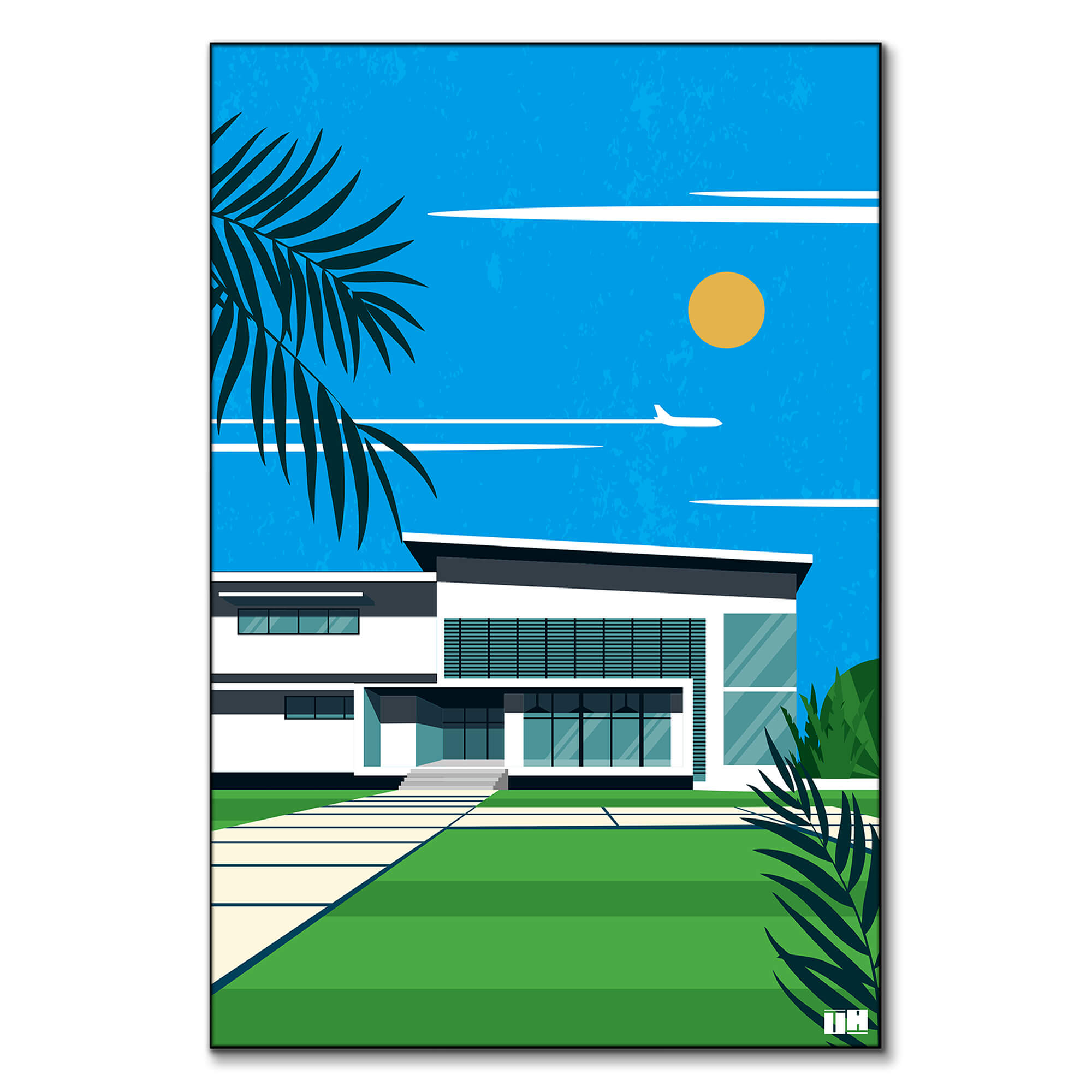 A masterpiece that blends pop art with the serene beauty of palm trees and striking architectural elements. This piece, rich in green and blue tones, evokes a sense of wanderlust and calm, making it an ideal choice for those seeking colorful art to brighten their spaces.