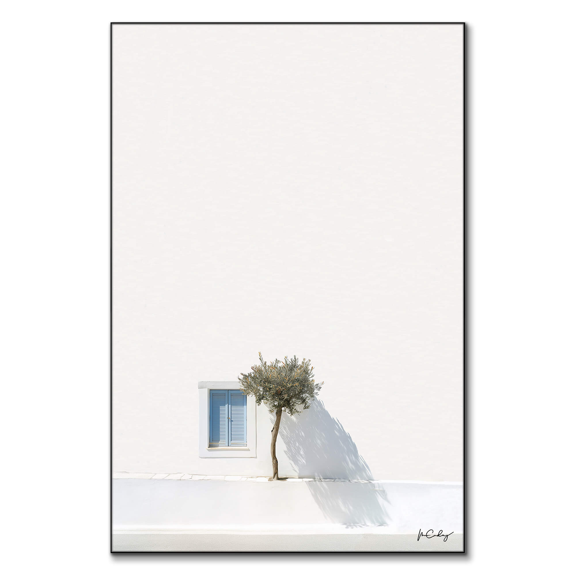 Every element sits in perfect balance, celebrating negative space valued in minimalist wall art. The lonely olive evokes daydreams of empty streets in late afternoon, aligning with our urban art décor collection. The sheer amount of white border and the tree’s elongated shadow introduce a slight visual twist fitting for surreal wall art. Architectural order frames the scene, making it equally at home among our architecture inspired artwork.