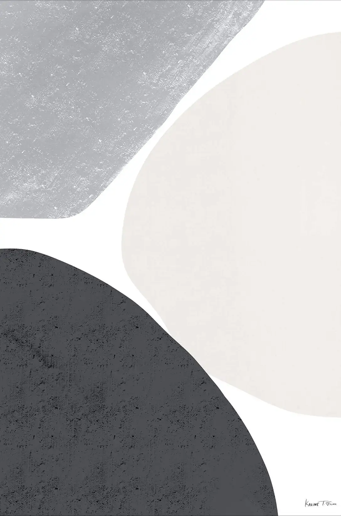 Geometric forms in slate gray, charcoal, and light gray intersect with elegance, creating a dance of curves and angles that play with contrast and harmony. Textured surfaces add depth to the simplicity, inviting contemplation on the interplay between color and shape.