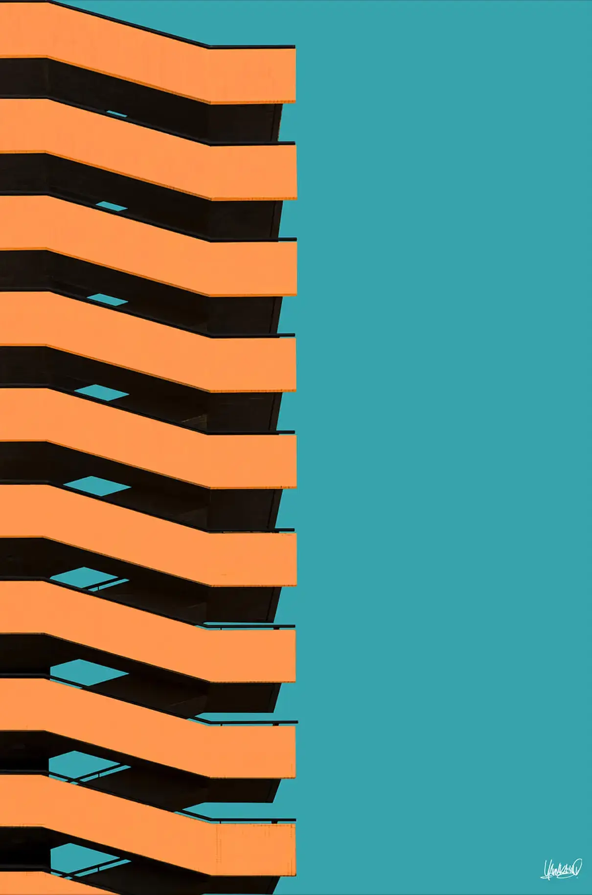 Based in Berlin, Yamakasino is a German mixed media artist known for reinventing reality through his camera lens. Drawing from his extensive experience as a street artist, Yamakasino’s architectural works feature bright colors and geometric shapes. His work combines digital editing and photography to seamlessly blend elements of minimalism and abstraction, showcasing his unique artistic vision.
