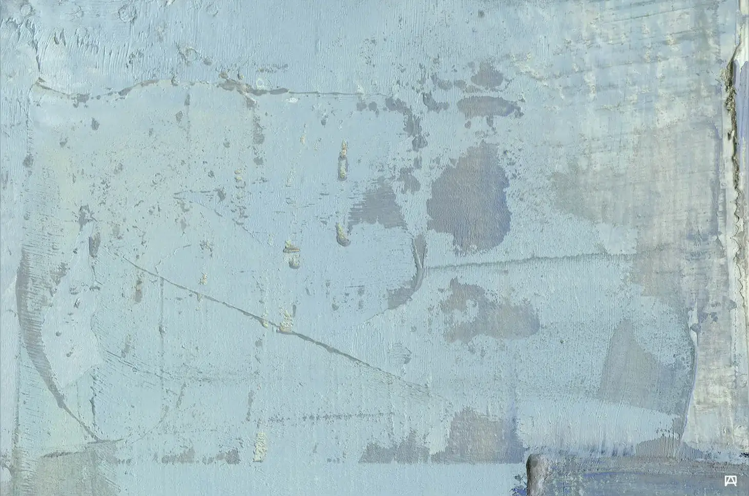 Thick, impasto brushstrokes and a cool-toned palette channel a calm and serene atmosphere in this neutral blue wall art.