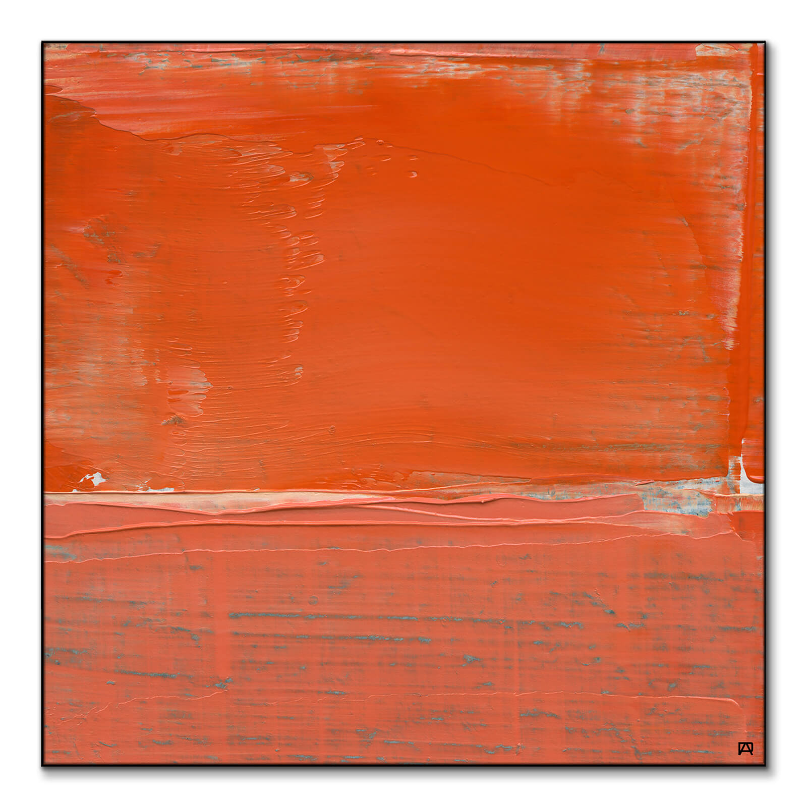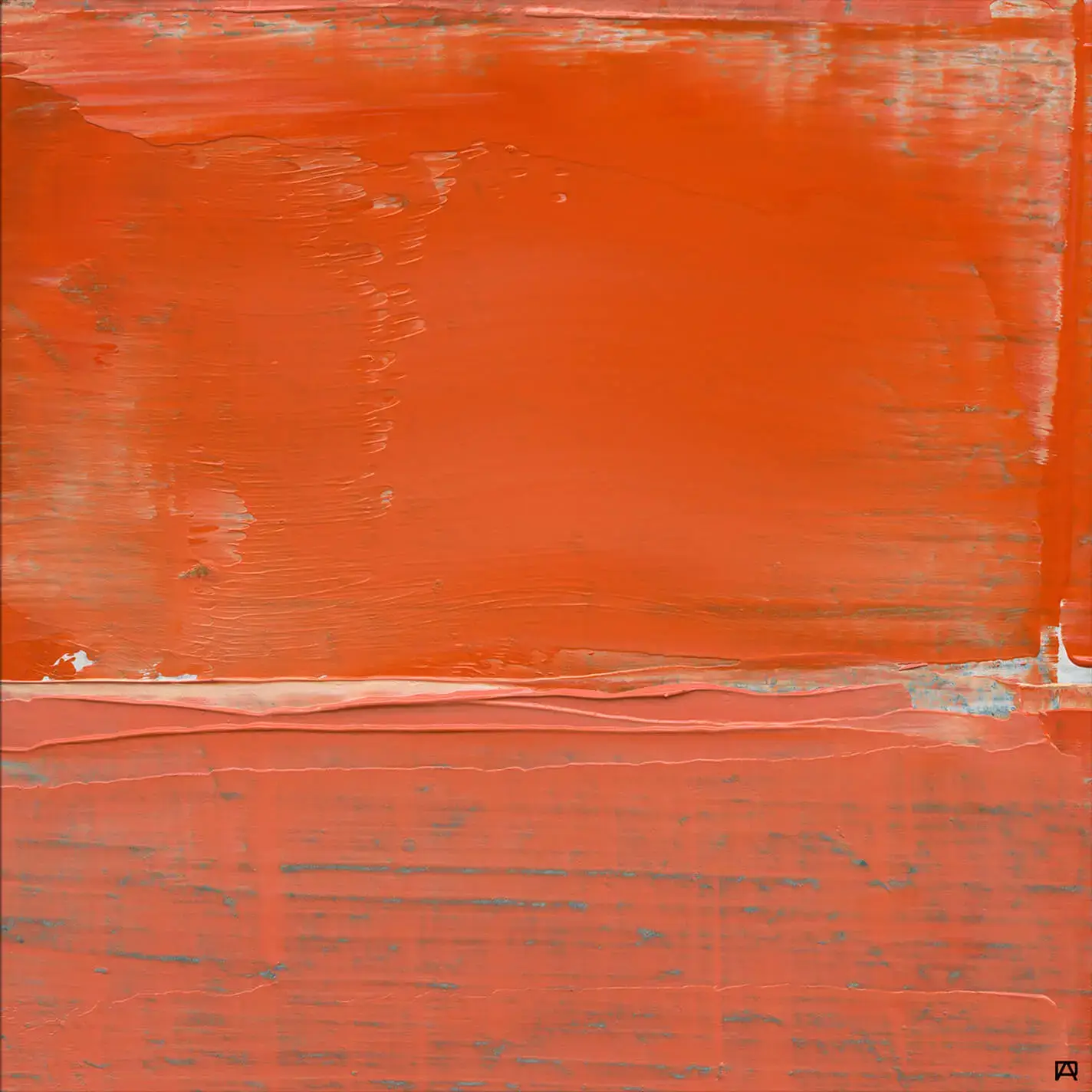Brushstrokes are layered, creating a feeling of vigorous movement in this orange art.