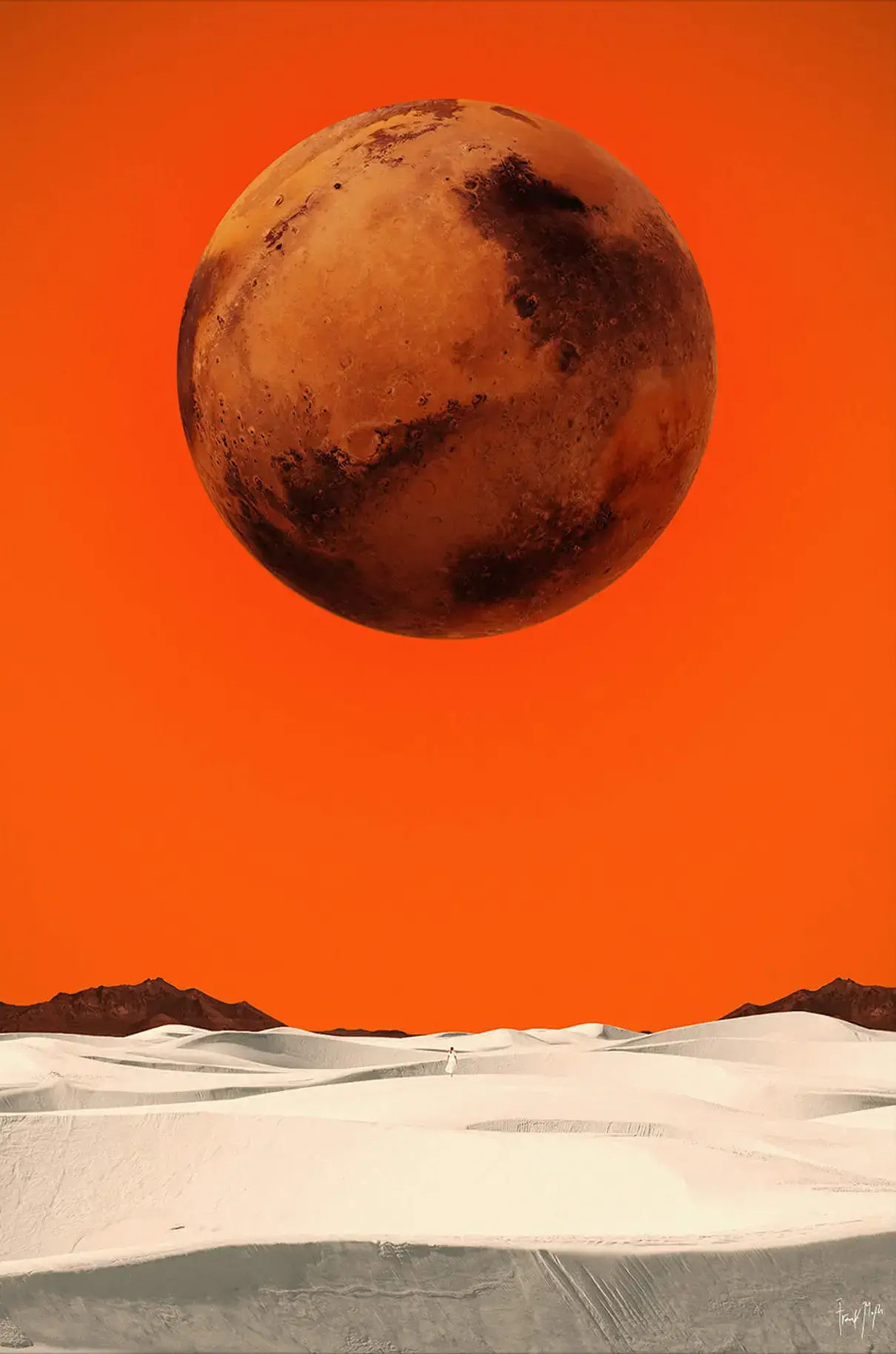 The composition evokes solitude, wonder, and scale. It’s a reminder of exploration—both cosmic and internal—and how beauty can emerge from stillness.