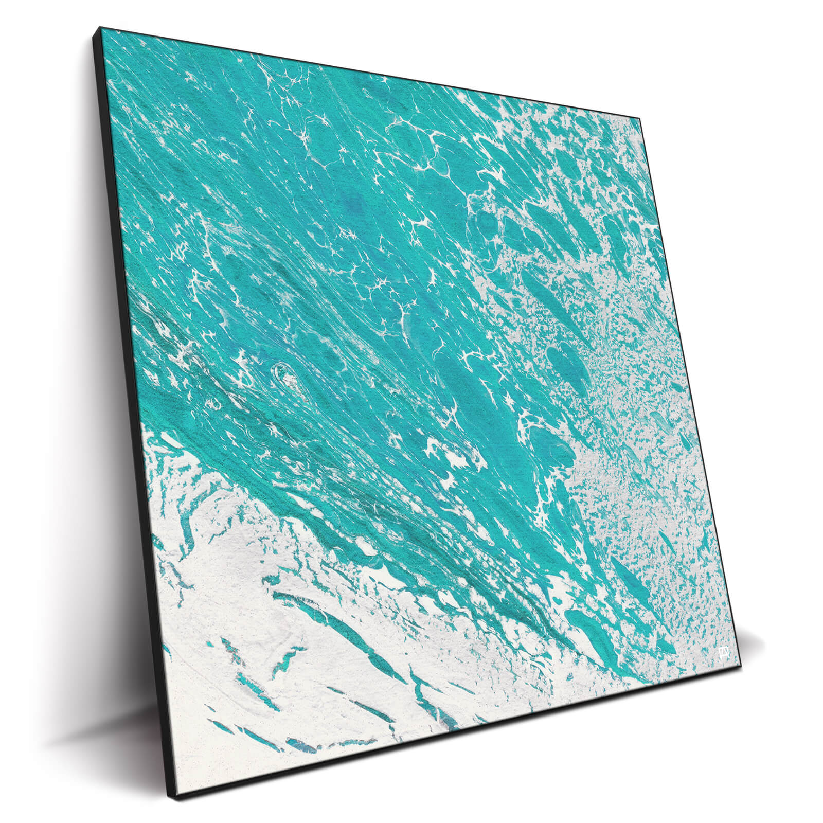 The white elements dazzle in contrast with the vibrant turquoise, which gives the piece dimension.