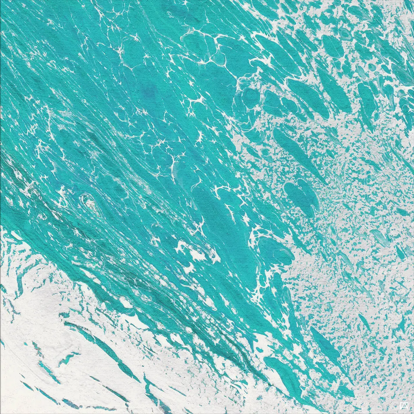 Organic and fluid, this artwork resembles natural phenomena like ocean waves or sea foam.