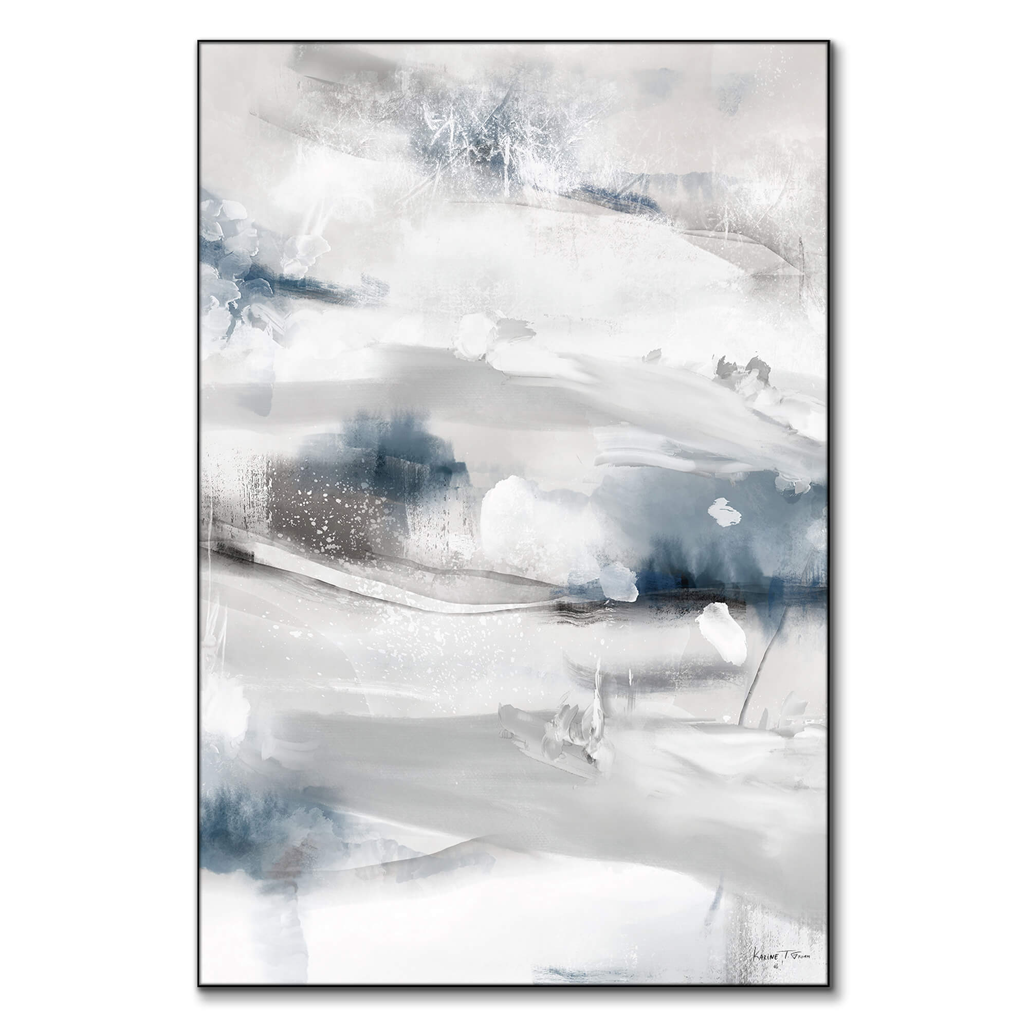 A light dusting of frost in various parts of the piece adds a delicate touch of sparkle, enhancing the serene and wintry feel. The layering of tones and abstract shapes reflects both the quiet solitude of snow-covered terrain and the dynamic forces of nature.