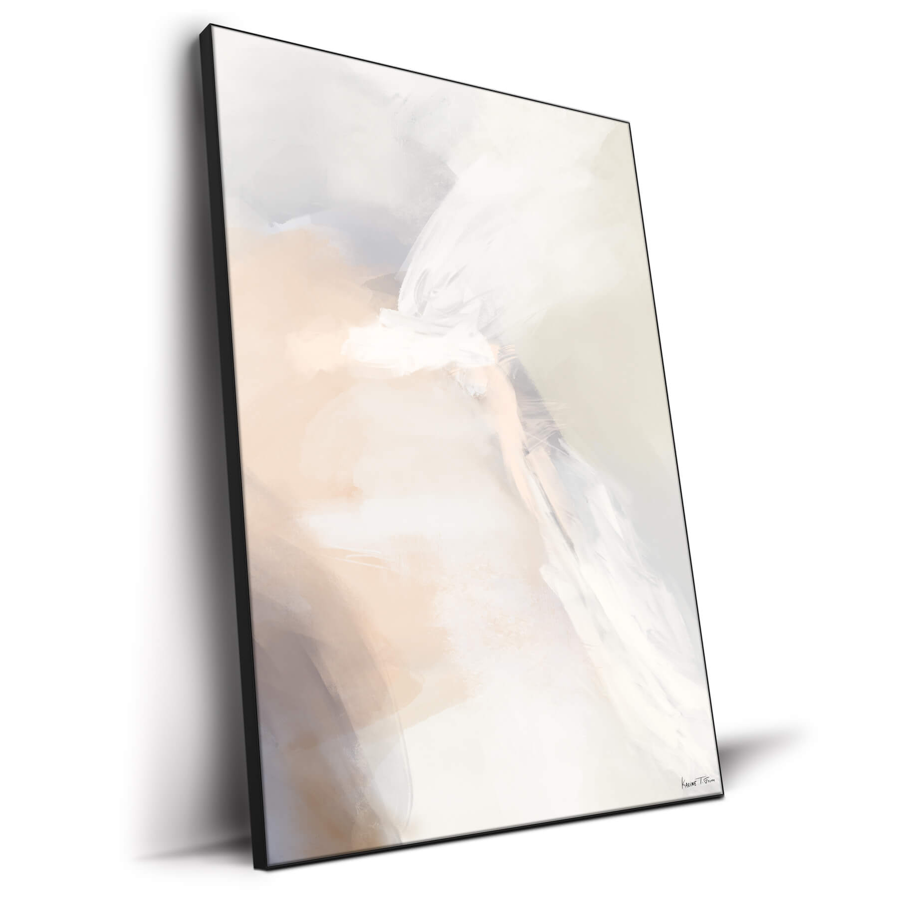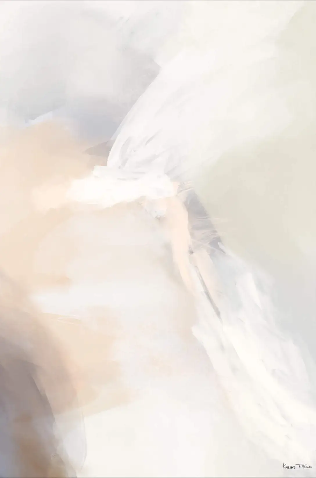 A symphony in subtlety, this piece by Karine Tonial Grimm whispers in hues of soft white and gentle neutrals, evoking a tranquil mood. The artwork’s diffuse strokes and ethereal blending transport viewers to a realm of peace and stillness.
