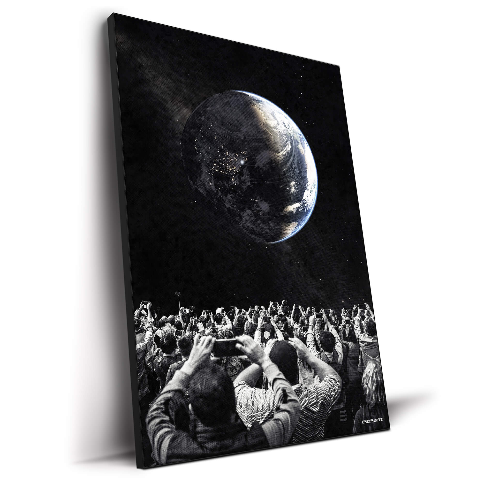 Underdott is an Italian indie digital artist celebrated for cinematic compositions that merge everyday life with galactic scale. His signature style fuses high-contrast black and white photography with bursts of subtle color, creating a visual jolt of emotion. Find more boundary-pushing pieces on the Underdott artwork page. Observers echoes his fascination with technology’s grip on human attention while showcasing his flair for photorealistic space imagery.